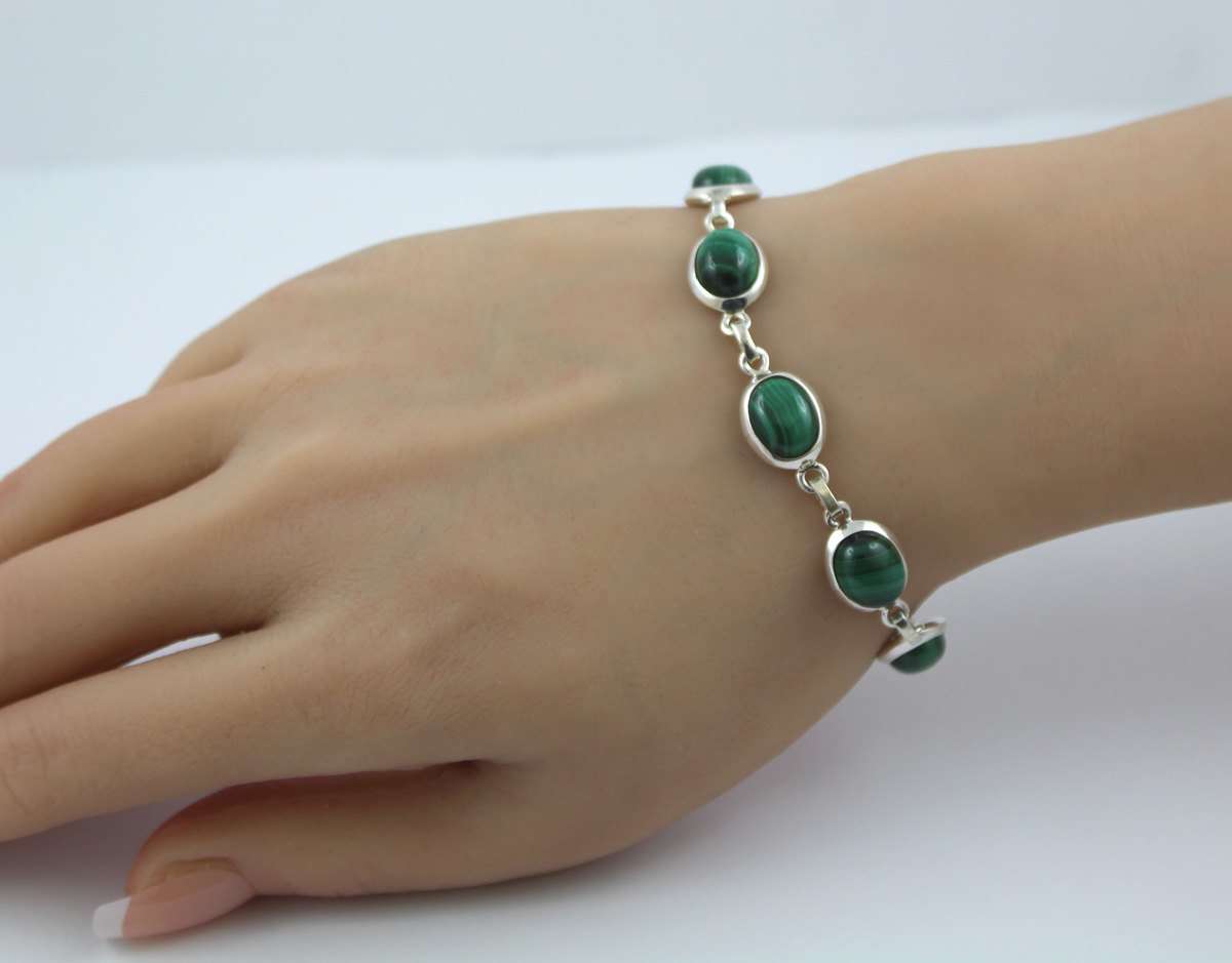 Malachit Armband Silber 925 grüne Edelsteine 30ct 20
