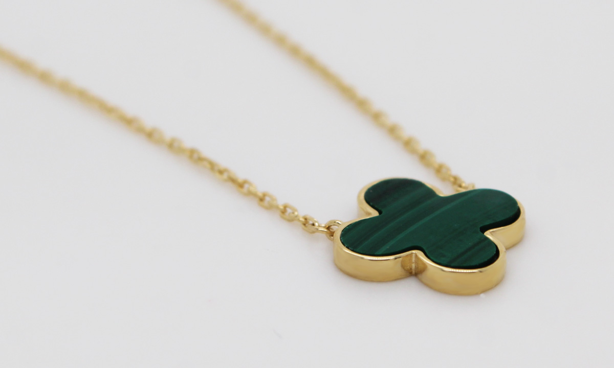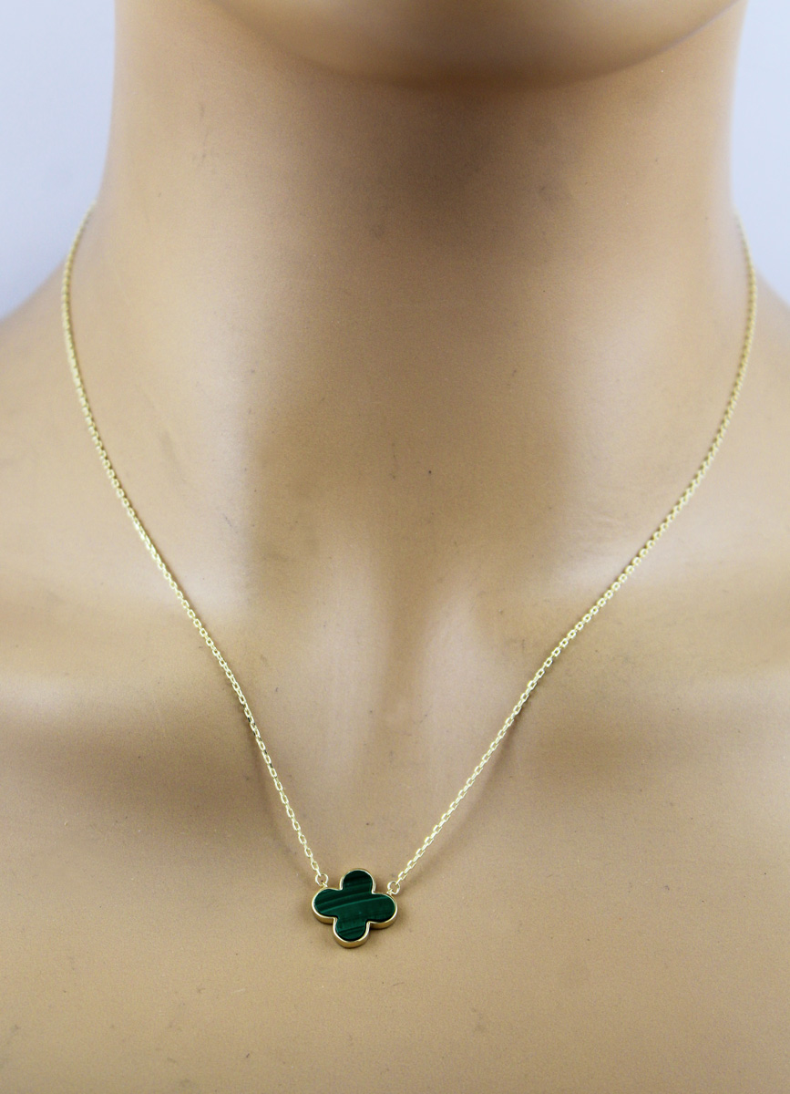 Malachit Kleeblatt Kette Gold 333 8K grüner Natur Edelstein 45