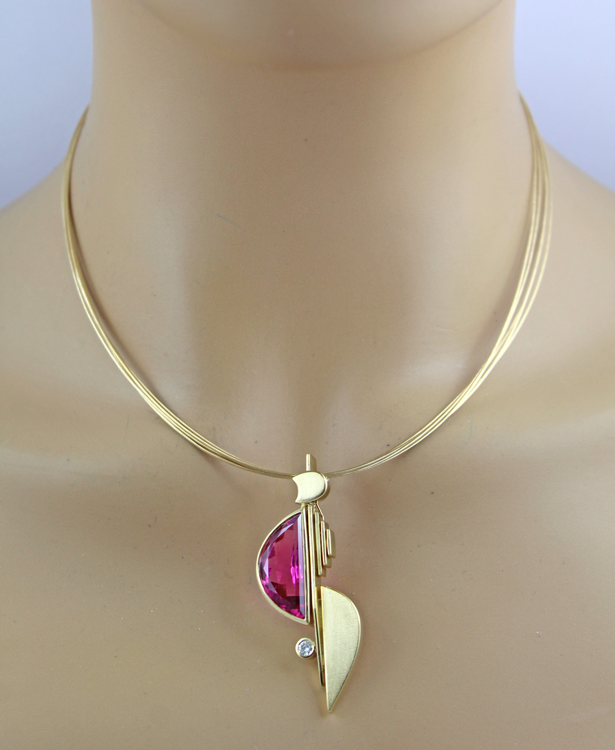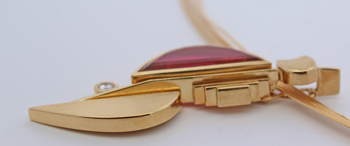 Omegareif Gold 750 18K pinker Rubellit 9.5ct Brillant 0.18ct. Ein absoluter Hingucker, die Blicke werden ihnen sicher sein. Anhänger: LxBxH 54,6x22,5x7,7mm, 42cm, 23,11 Gramm. Damenkette Edelsteinkette Edelsteinschmuck. Tauchen Sie ein in die Welt der meisterhafter Goldschmiedekunst