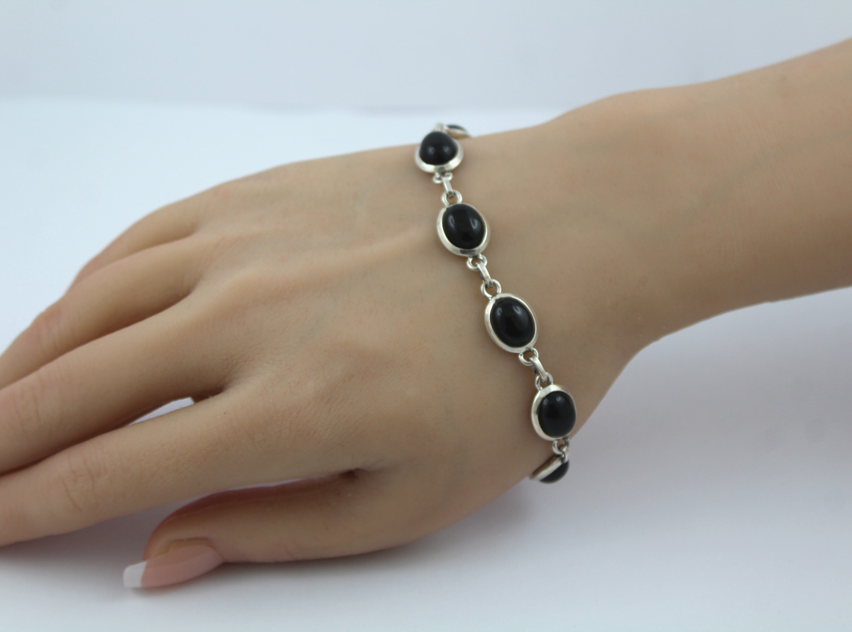 Onyx Armband Silber 925 schwarze Edelsteine 25ct. 20