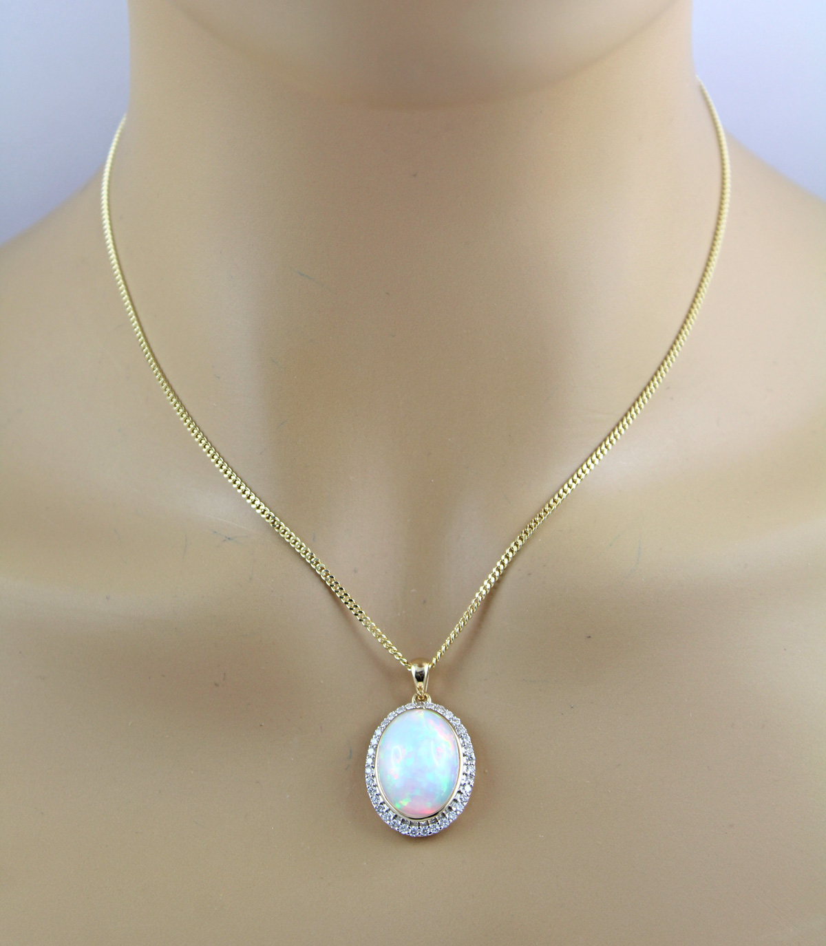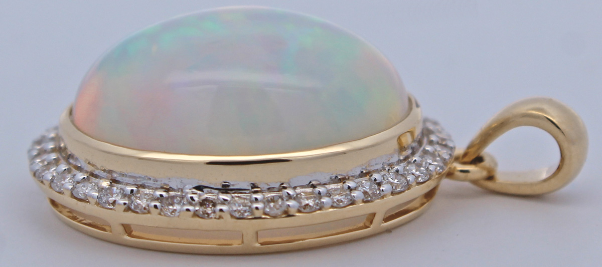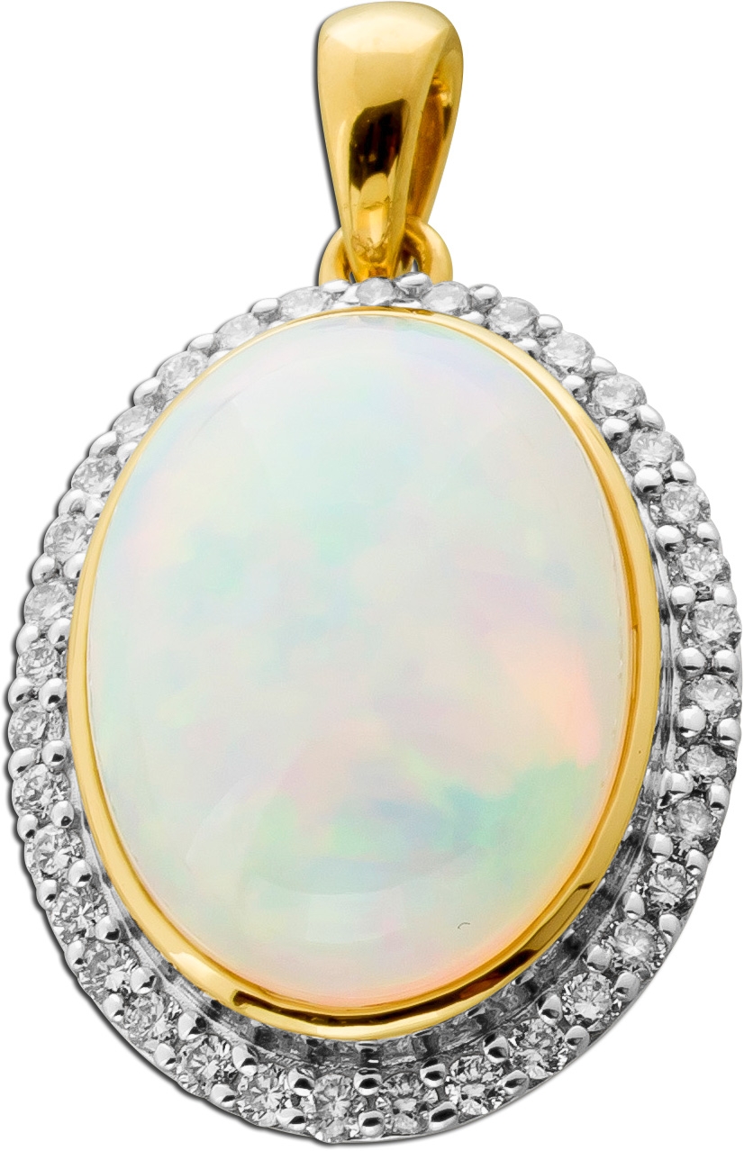 Opal Anhänger Gold 585 14K nat Opal 6.8ct Lab Grown Diamanten 0.5ct