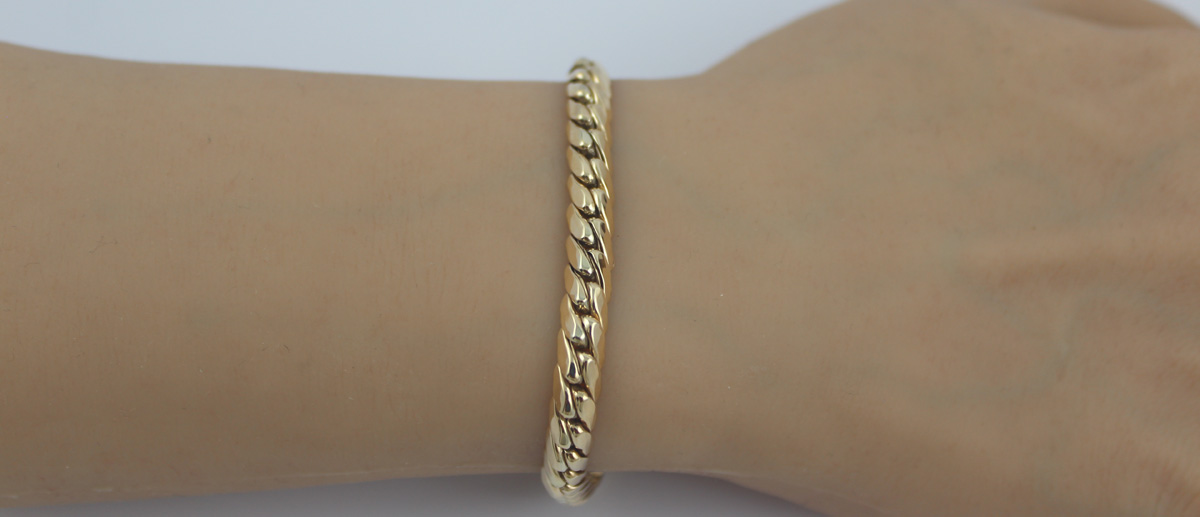 Panzer Armband Gelbgold 333 8 Karat. Ein absoluter Hingucker, die Blicke werden ihnen sicher sein. Breite 5,8mm, Höhe 2,7mm, 19cm, 7,6 Gramm. Damenarmband Damenschmuck. Tauchen Sie ein in die Welt der meisterhafter Goldschmiedekunst