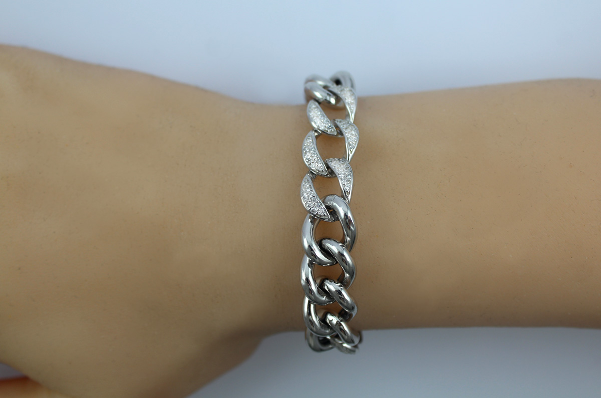 Panzerarmband 11mm Cuban Silber 925 weiße Zirkonia 17