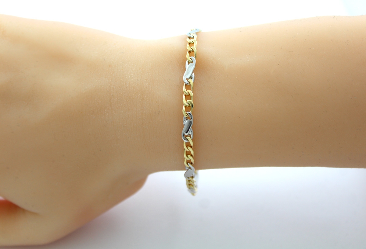 Panzerarmband 4,0mm Gelbgold Weißgold 375 9 K massiv poliert Bicolor 19