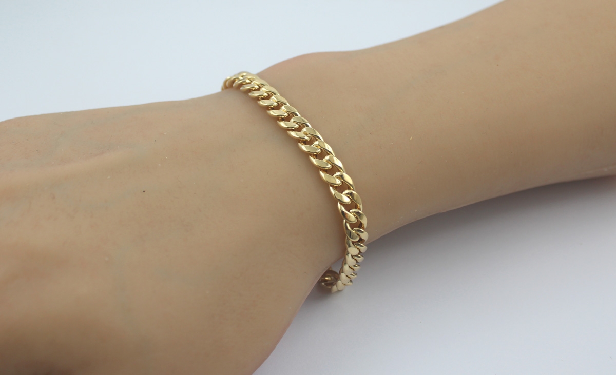 Panzerarmband 4.9mm Gelbgold 585 14 K halbmassiv poliert Cuban Link 19