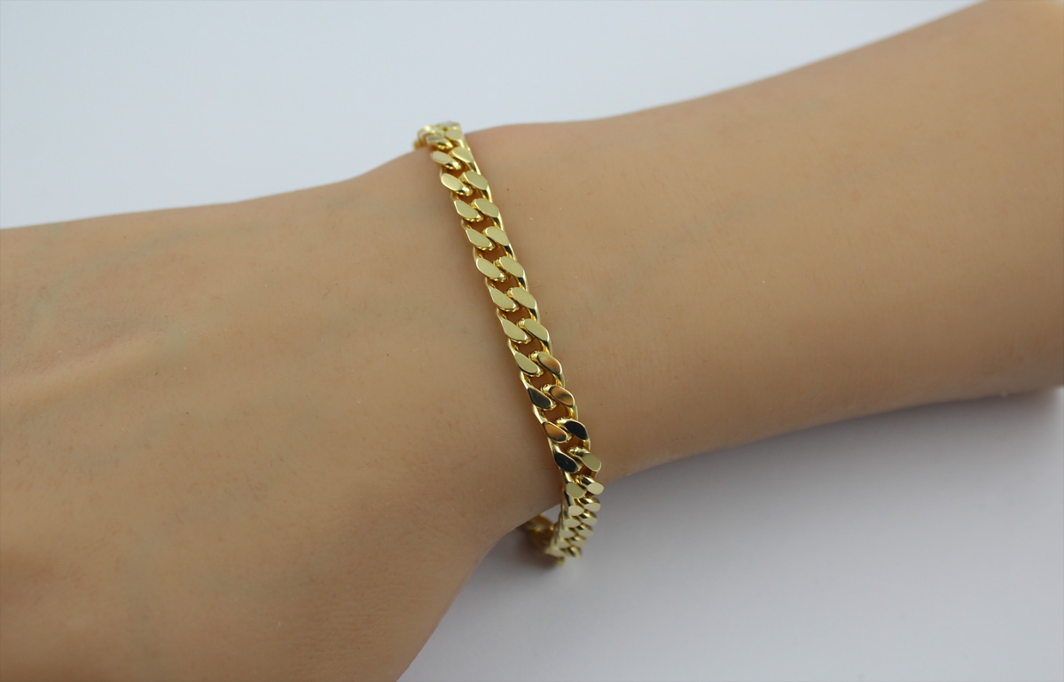 Panzerkette Armband 4,8mm Gold 585 14 K massiv poliert Cuban Link 21