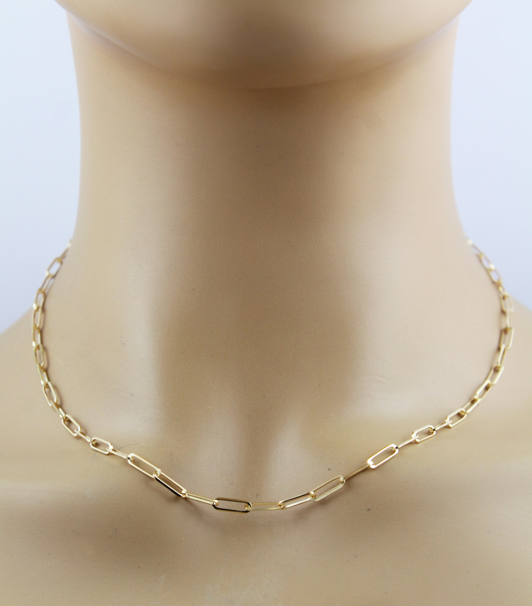 Paperclip Halskette Gelbgold 585 14 Karat. Klassische Goldkette zu jedem Anlass passend. Breite 3mm, Stärke 0,6mm, Gewicht bei 45cm-6,24 Gramm, bei 51cm-6,81 Gramm. Damenkette Goldkette Damenschmuck. Geschenkidee zeitloser Klassiker
