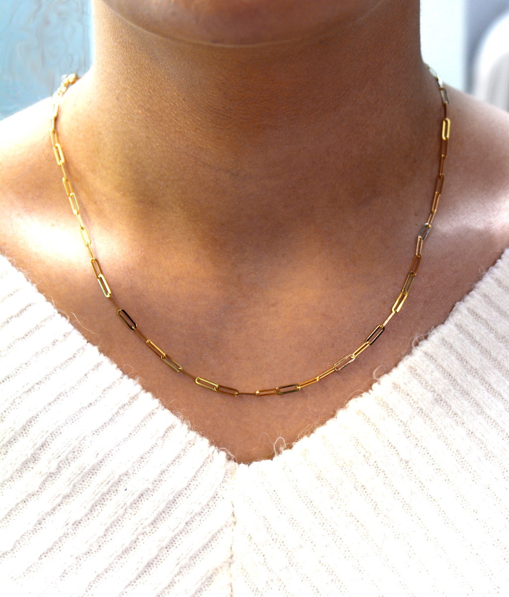 Paperclipkette 2,7mm Gelbgold 333 8 Karat halbmassiv Büroklammer Goldkette Goldarmband poliert. Legierung: Gelbgold 8 Karat (333). Maße: Breite 2,7mm, Stärke 0,3mm Längen: 20cm und 45cm. Geschenkidee zeitloser besonderer Klassiker. Damenschmuck Damenkette Herrenkette Herrenschmuck unisex