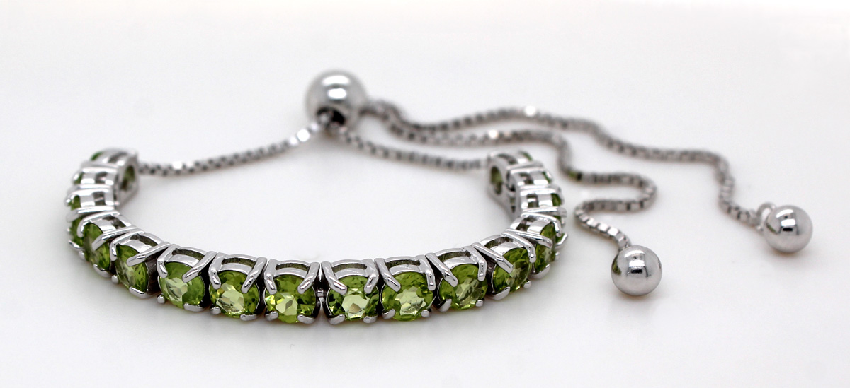 Peridot Bolo Armband Silber 925 hellgrüne Edelsteine 25