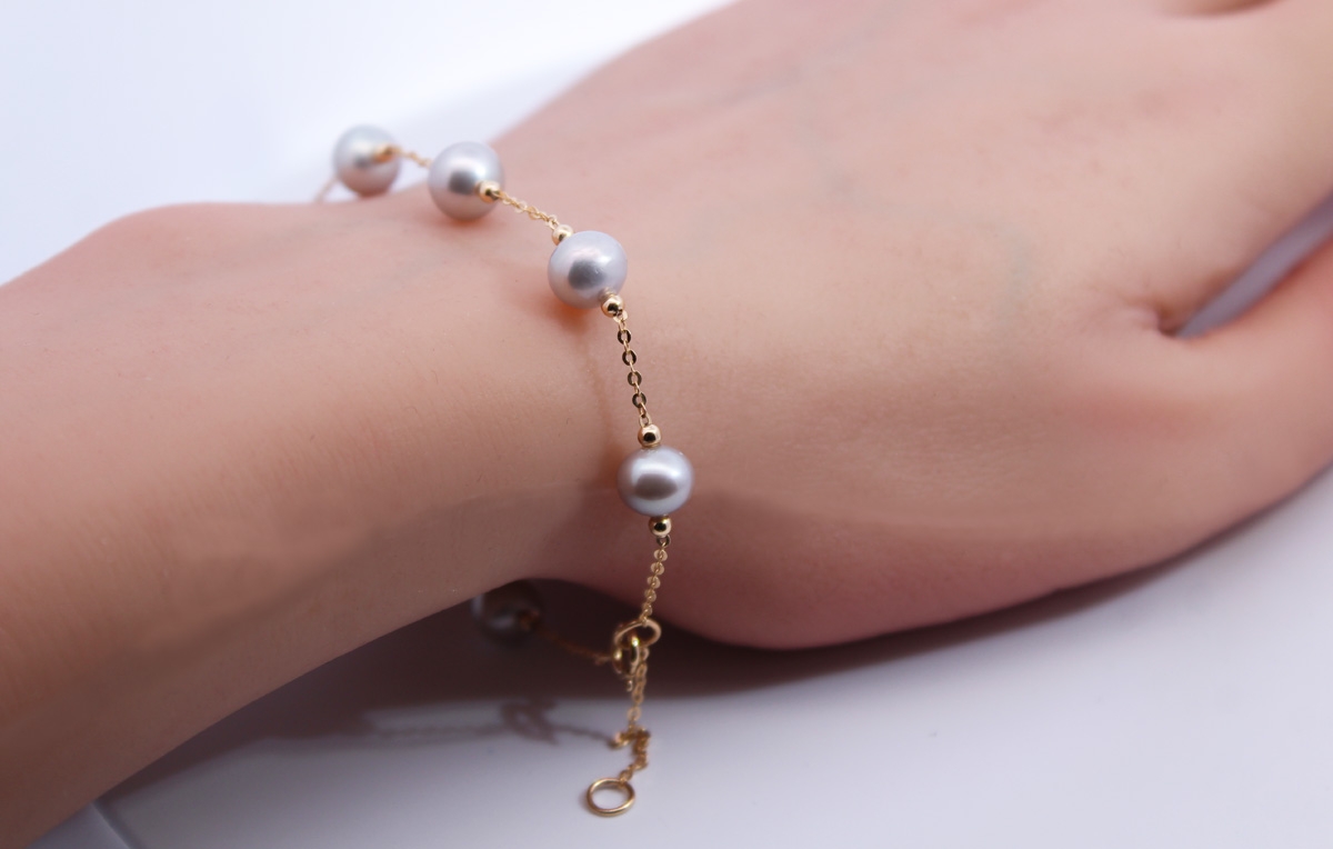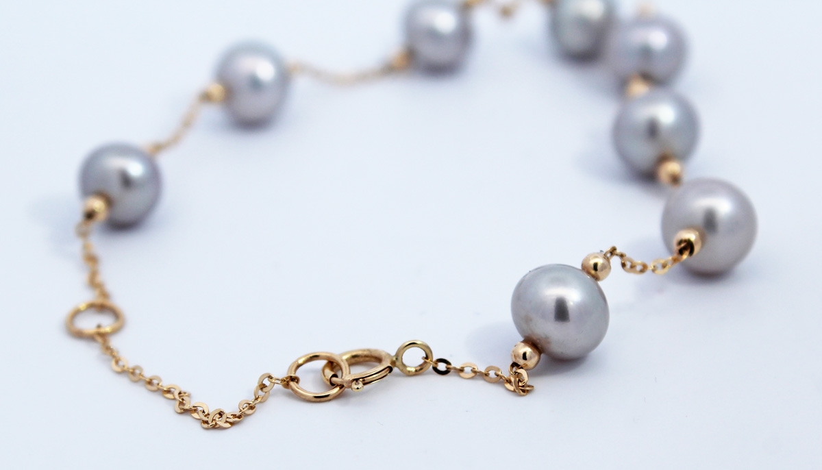 Perlen Armband Gold 585 14K graue Süßwasserzuchtperlen 6-6.5mm 21