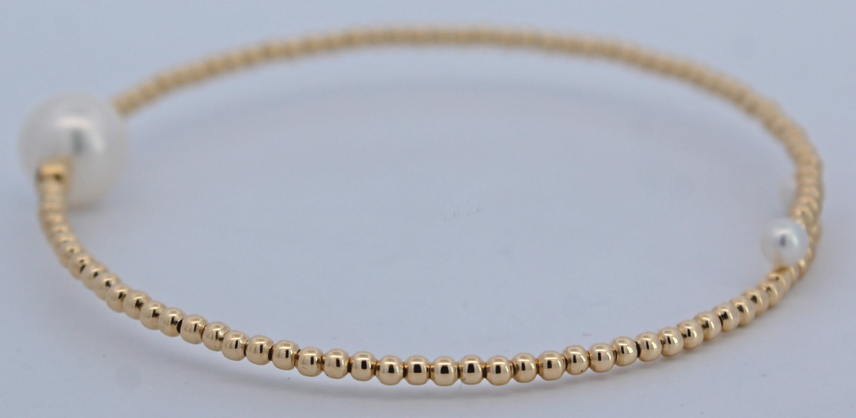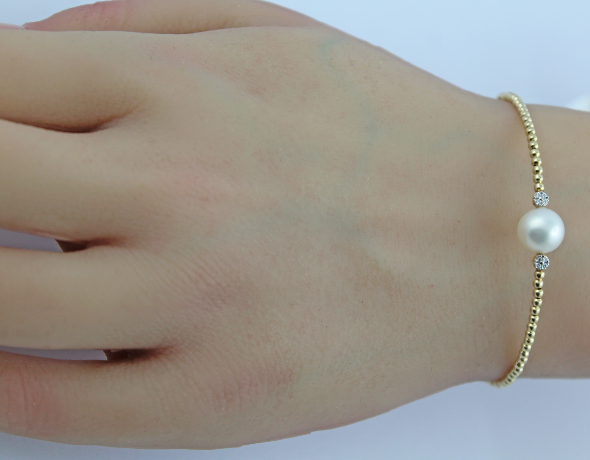 Perlen Armreif Gold 585 14K Natur Diamanten 0.024ct Süßwasserzuchtperlen 99