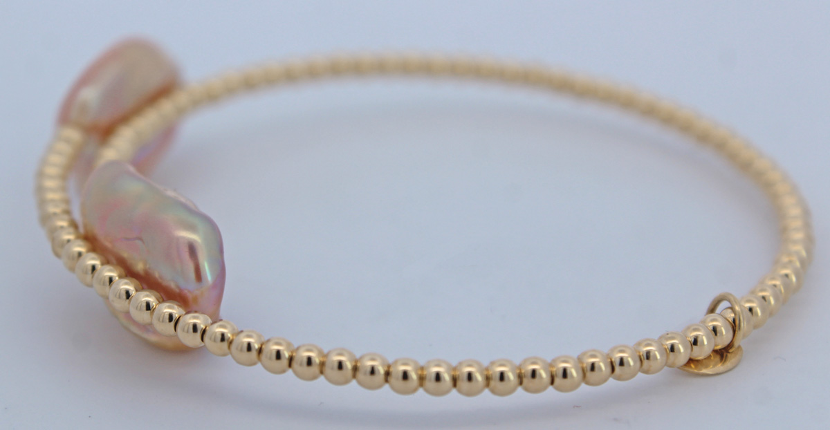 Perlen Armreif Gold 585 14K pfirsichfarbene Barock Keshi Perlen 99