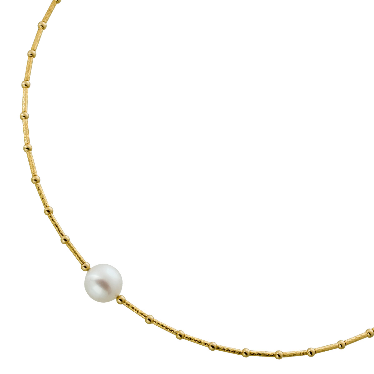Perlen Halsreif Gelbgold 585 14K Süßwasser Zuchtperlen 45
