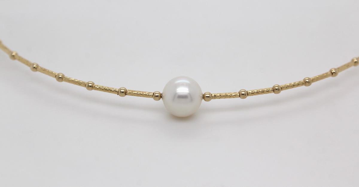 Halsreif Gelbgold 585 Süßwasser Zuchtperlen. Länge 40-45cm passgenau, Süßwasser Zuchtperlen 1x 8mm und 2x 5mm. Ein traumhafter Begleiter für besondere Momente, der zeitlose Eleganz und luxuriösen Stil verkörpert
