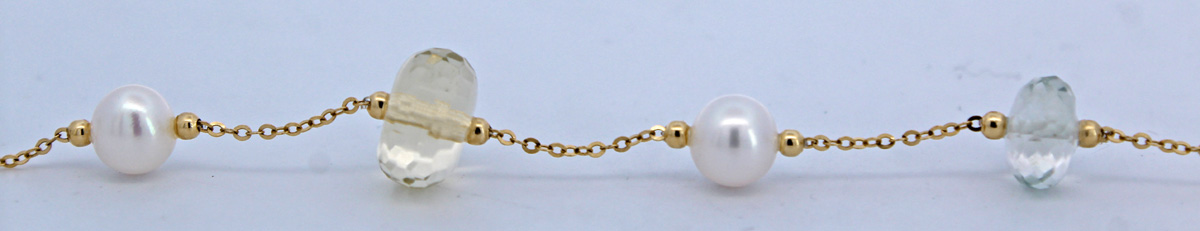 Perlenarmband Gold 585 14K nat grüne Amethyste nat Zitronenquarze Süßwasserzuchtperlen 19