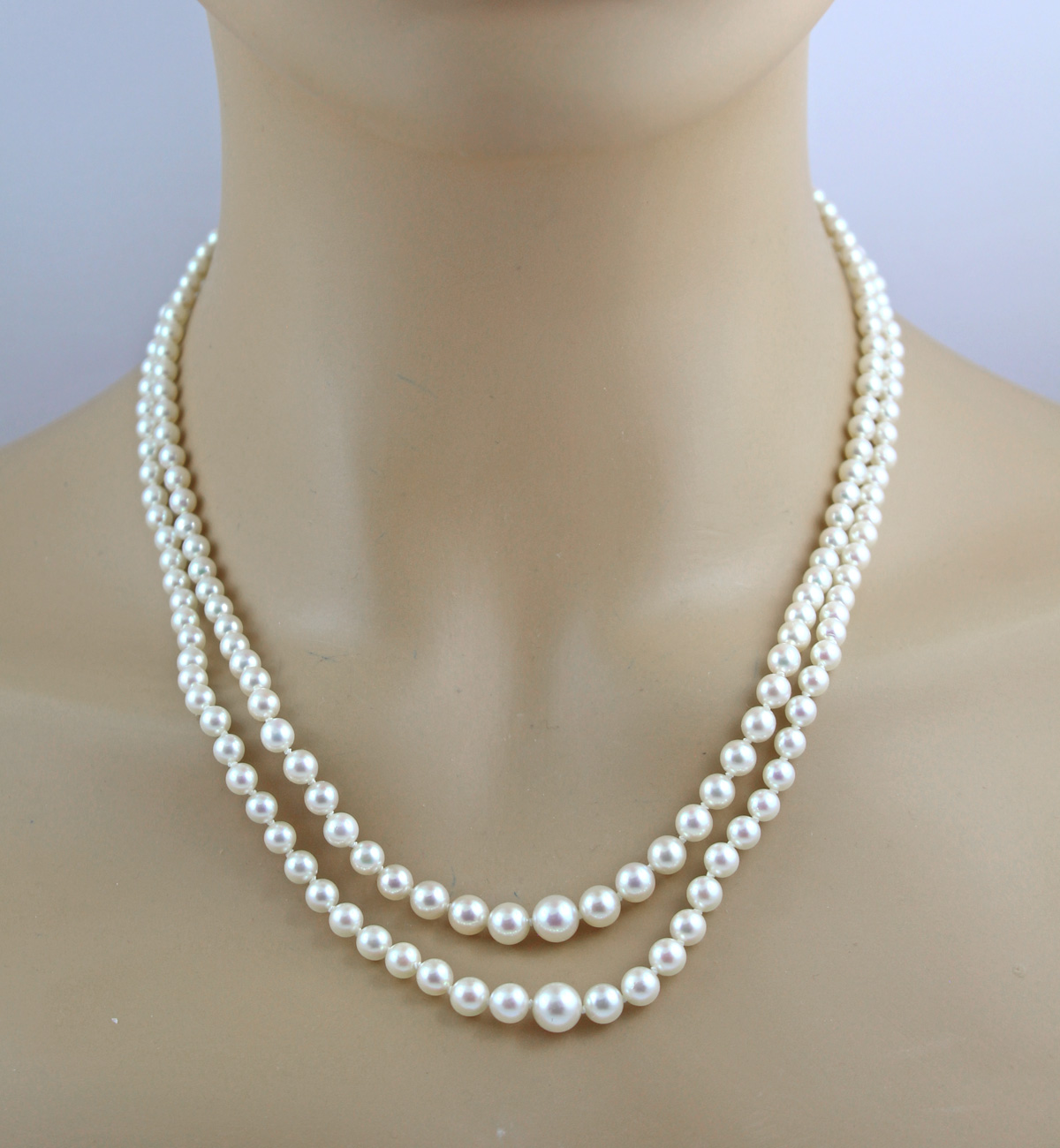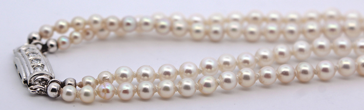 Perlenkette 2-reihig Diamanten Akoyaperlen 7.4-2.9mm Antikschmuck 48