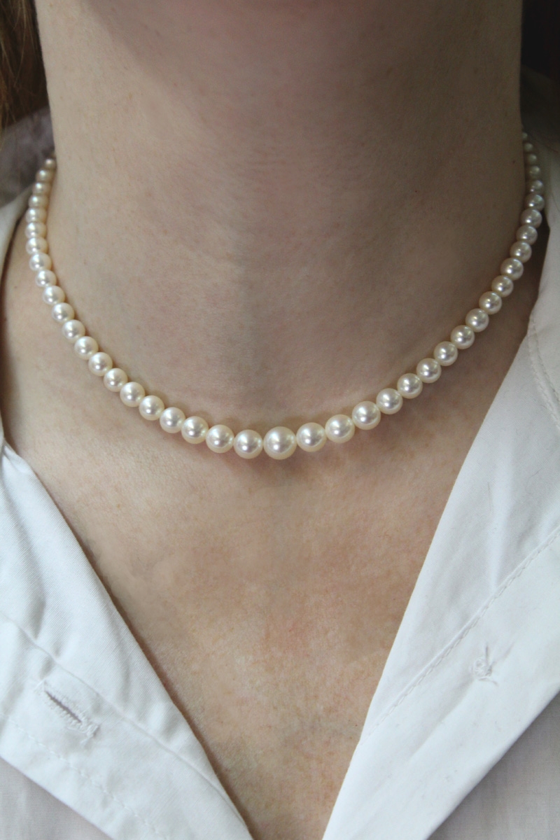 Perlenkette 37cm 7mm japanischen Akoyaperlen weiss 37