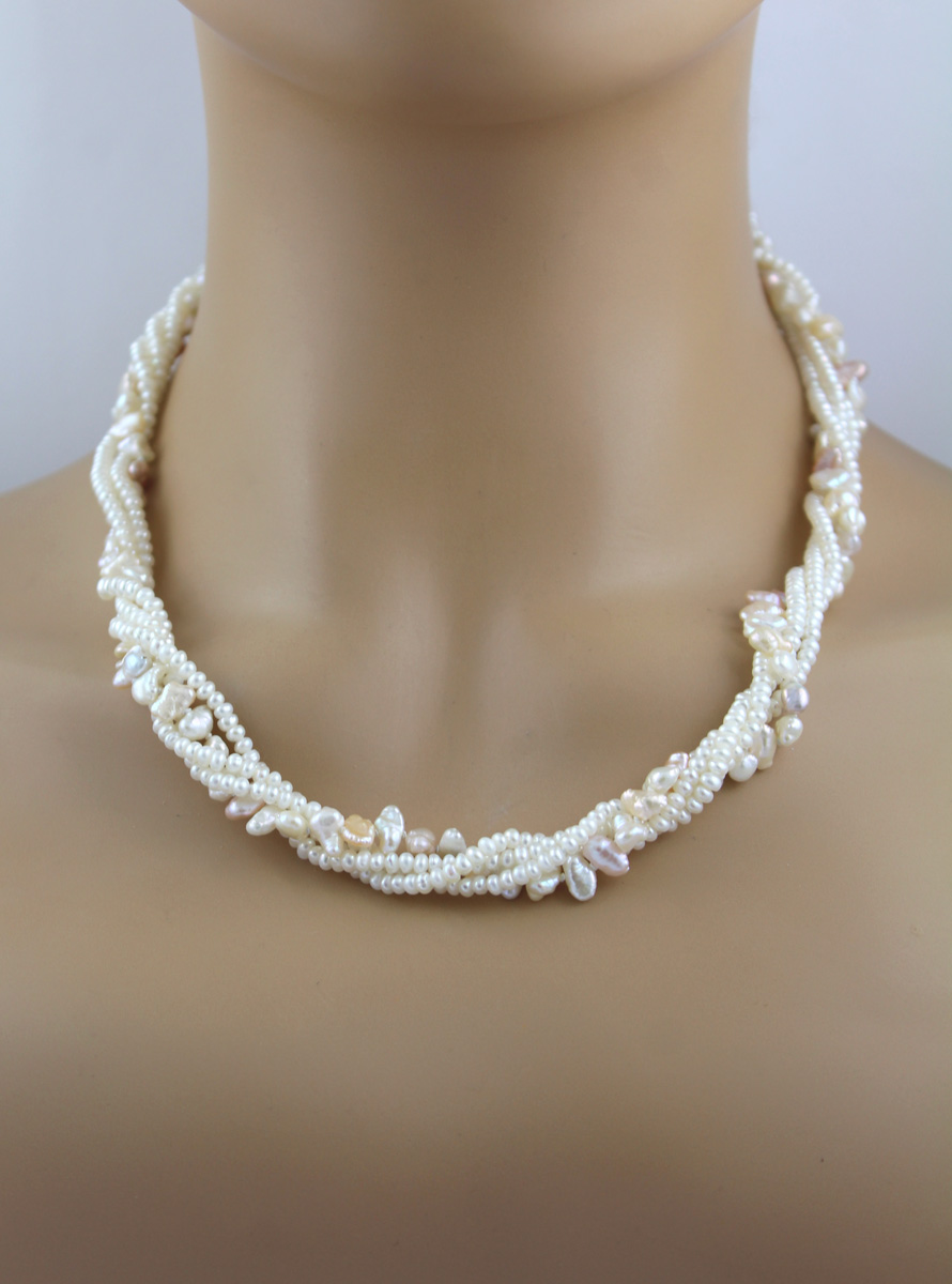 Perlenkette 44cm japanische Biwaperlen 8-4mm Gold 585 14K. Sanfter und zugleich romantischer Stil für jede Frau. Länge 44cm, 42,37 Gramm, Schließe 13,5x12,5x9,1mm. Damenkette Perlenkette Perlenschmuck. Eine exquisite Ergänzung für Ihre Schmucksammlung