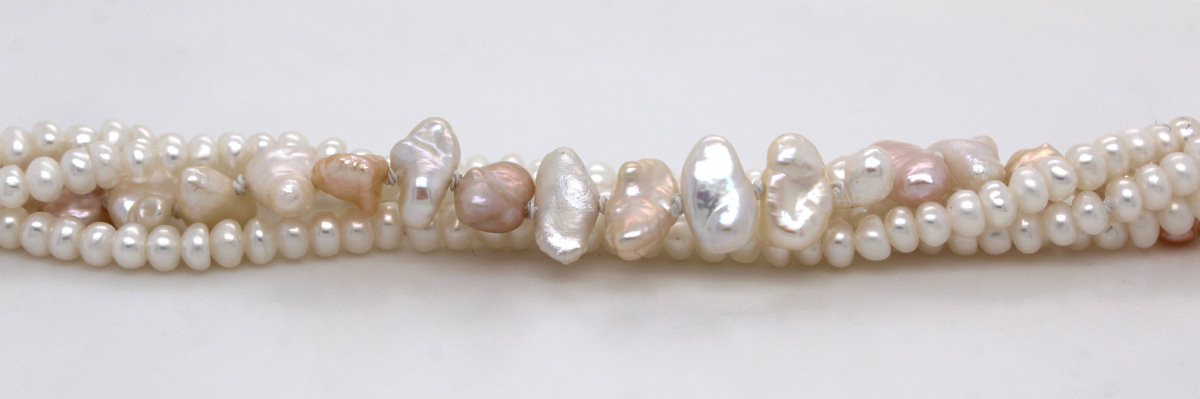 Perlenkette 44cm japanische Biwaperlen 8-4mm Gold 585 14K 44