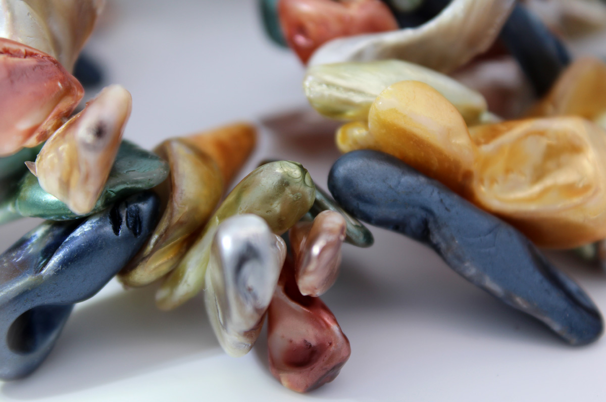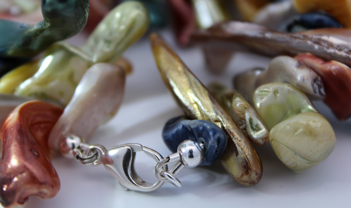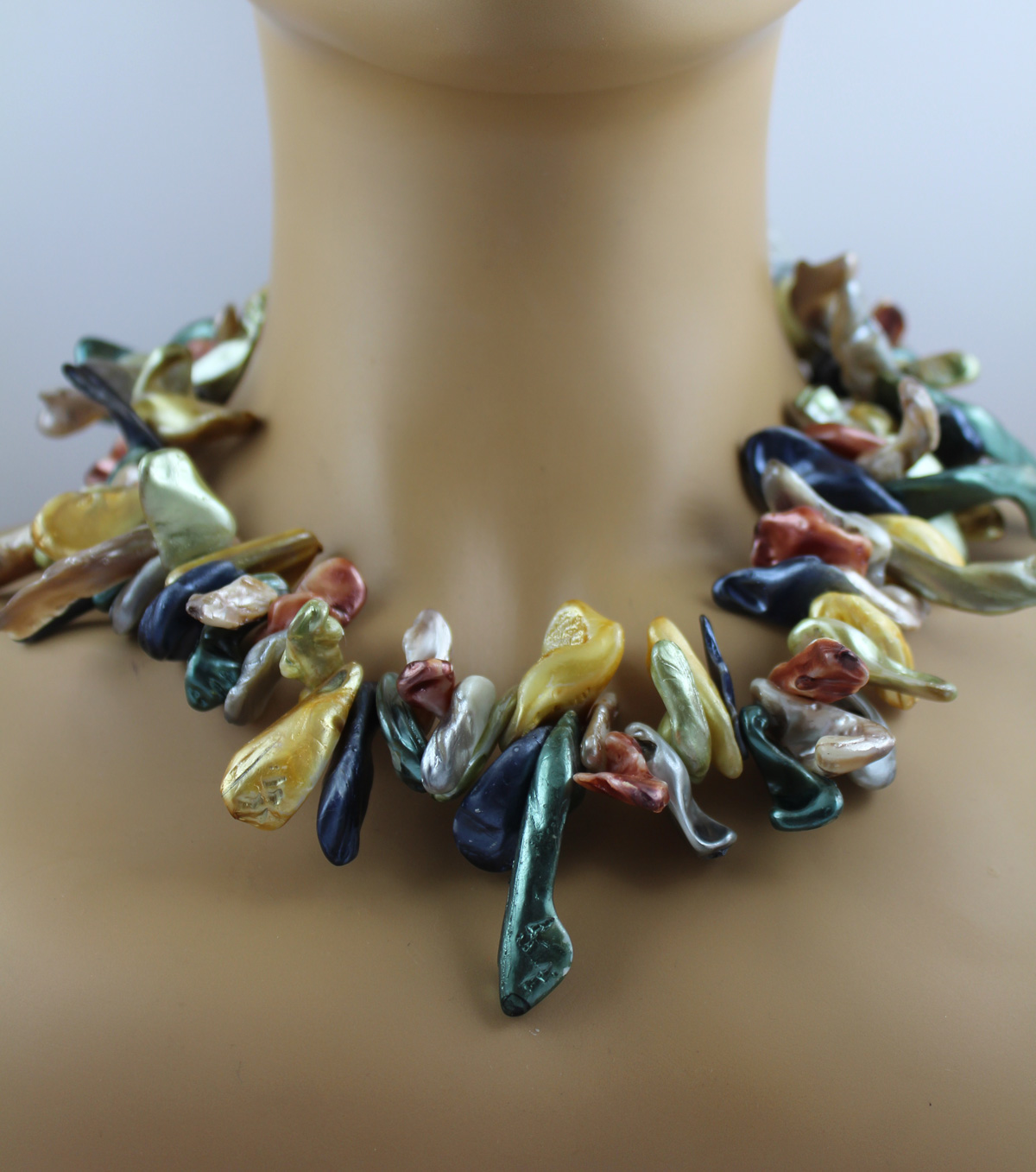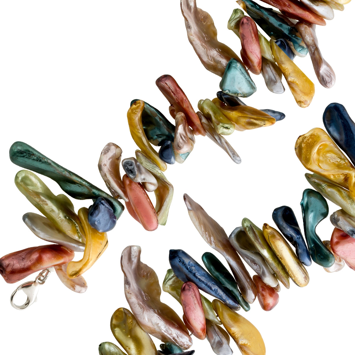 Perlenkette 44cm Silber 925 Süßwasser Perlen gelb rot grün blau. Ein absoluter Hingucker, die Blicke werden ihnen sicher sein. 288,3 Gramm, Perlen 49,9x3,4-14,3mm. Damenkette Perlenkette Perlenschmuck. Tauchen Sie ein in die Welt der meisterhafter Goldschmiedekunst