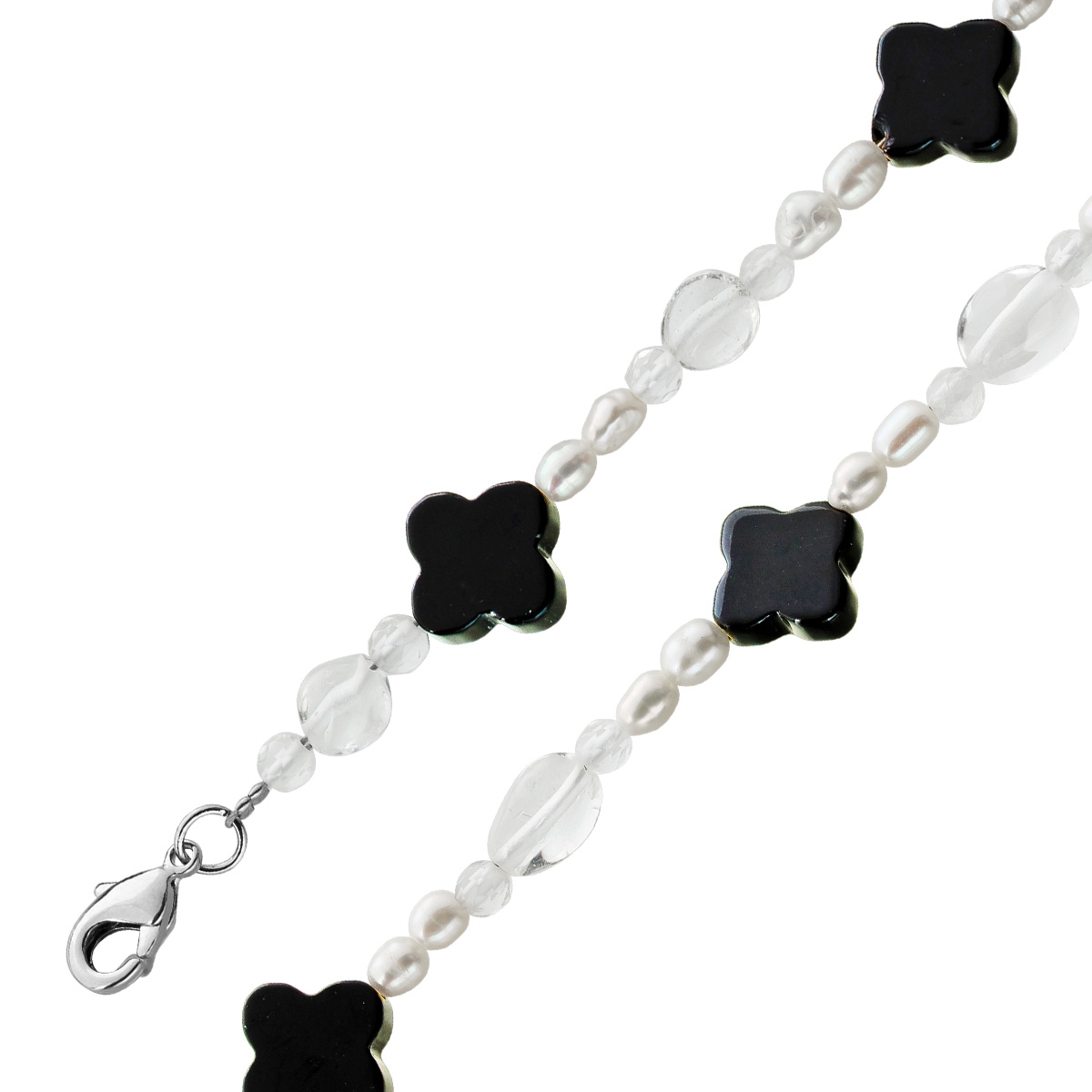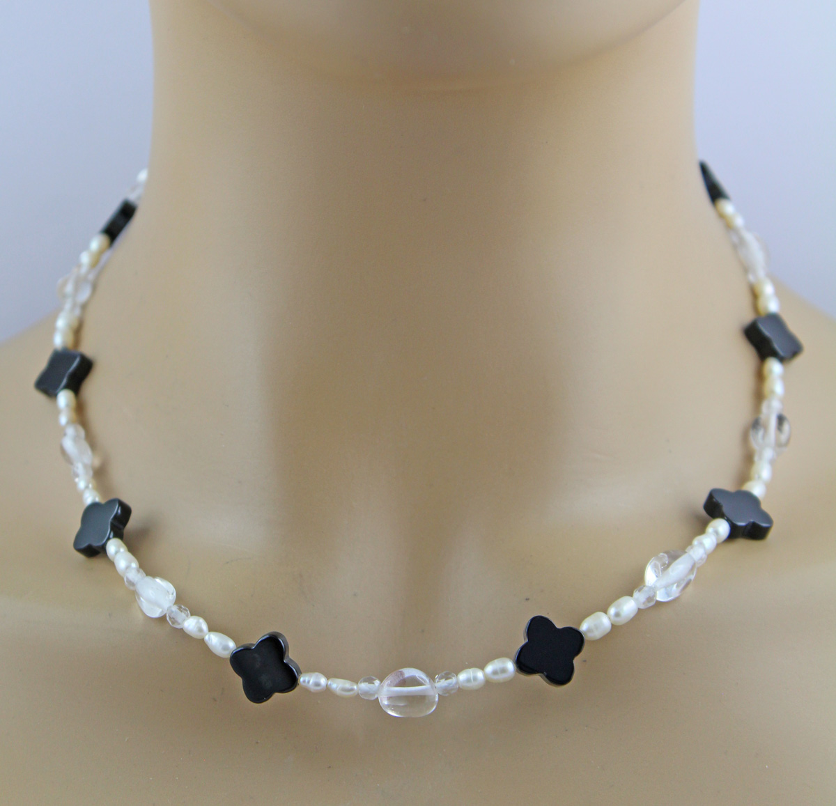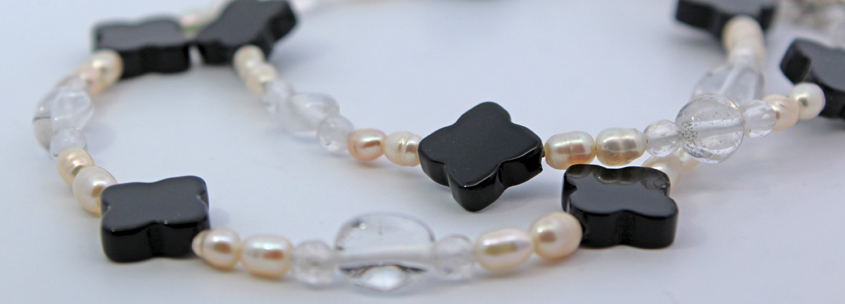Perlenkette 47cm Süßwasserperlen schwarzer Natur Achat Bergkristall. Ein absoluter Hingucker, die Blicke werden ihnen sicher sein. Achat 12,3x3,6mm, Bergkristall 7,2x3,6mm, Perlen 4mm, 42+5cm, 15,6 Gramm. Damenkette Perlenkette Perlenschmuck Edelsteinkette. Dieses Schmuckstück ist ein Symbol für Klasse, das Generationen überdauert