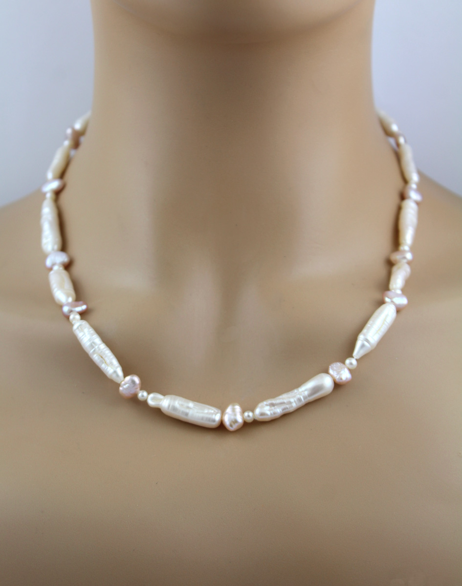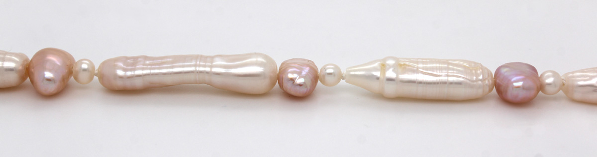 Perlenkette 48cm japanische Biwaperlen Gold 585 14 Karat 48