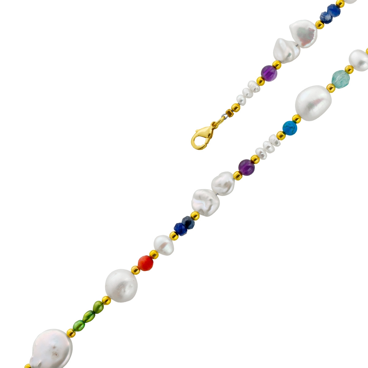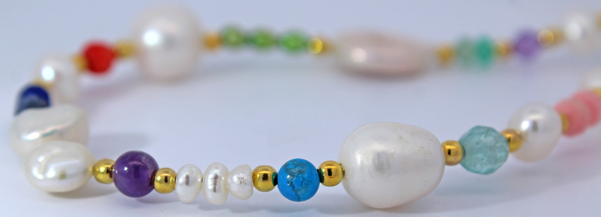 Perlenkette 48cm Süßwasserperlen Amethyste Türkise Bergkristalle Fluorite Lapis Koralle 48