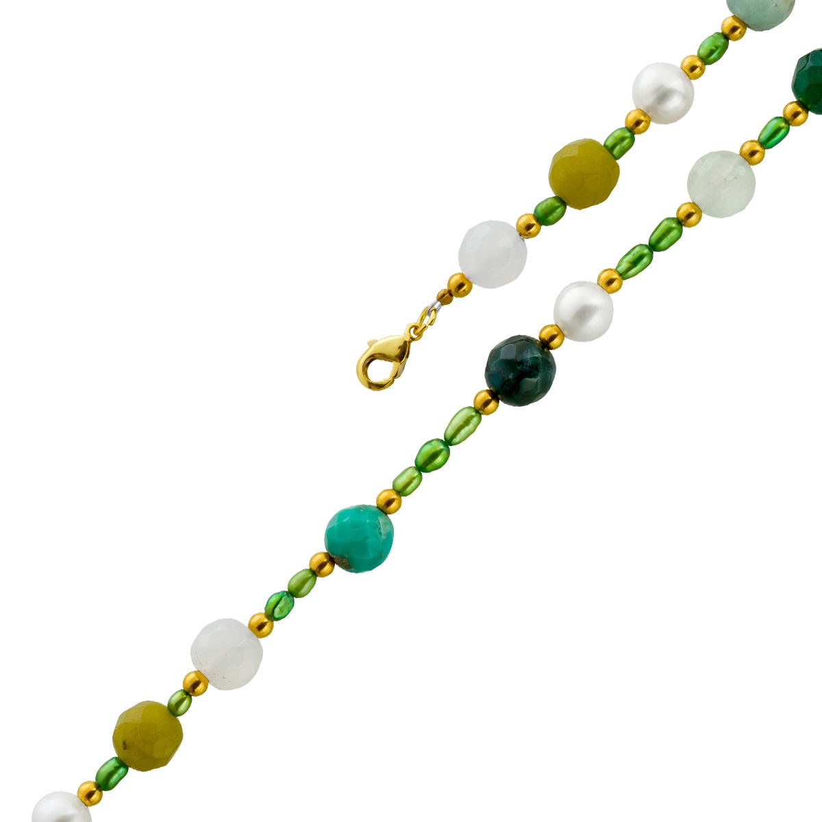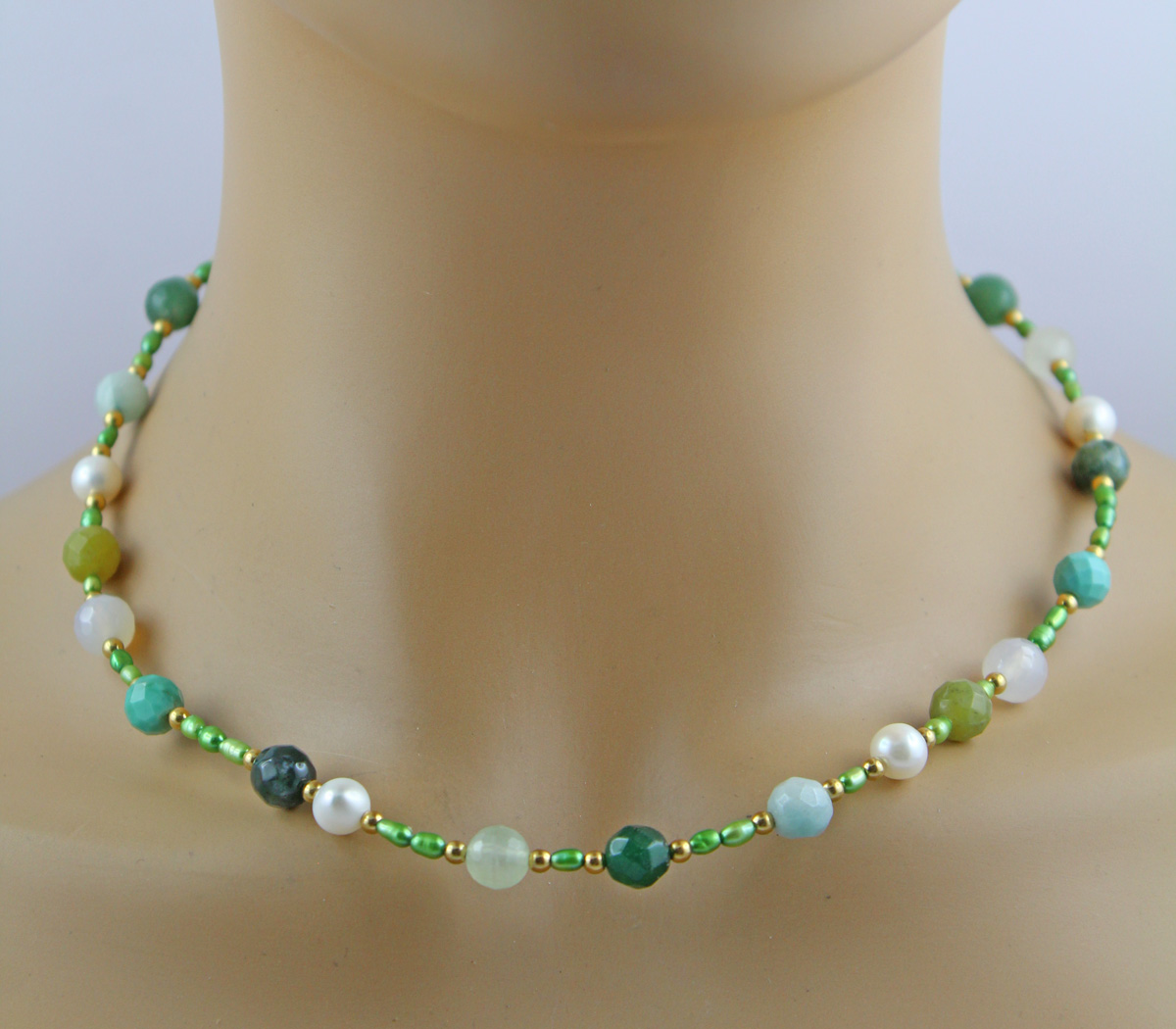 Perlenkette 48cm Süßwasserperlen Natur Türkise Amazonit Achat Jaspis. Ein absoluter Hingucker, die Blicke werden ihnen sicher sein. Perlen 2,9-7,2mm, Edelsteine 7,6-8mm, 42+6cm, 20,3 Gramm. Damenkette Perlenkette Perlenschmuck Edelsteinkette. Tauchen Sie ein in die Welt der meisterhafter Goldschmiedekunst