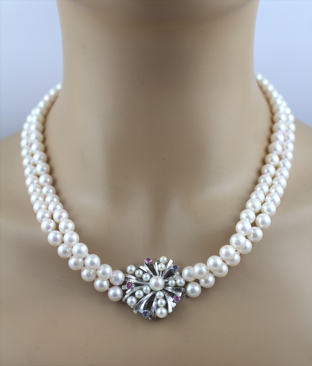 Perlenkette 50cm Weißgold 585 14K Akoyaperlen Saphire Antikschmuck 50