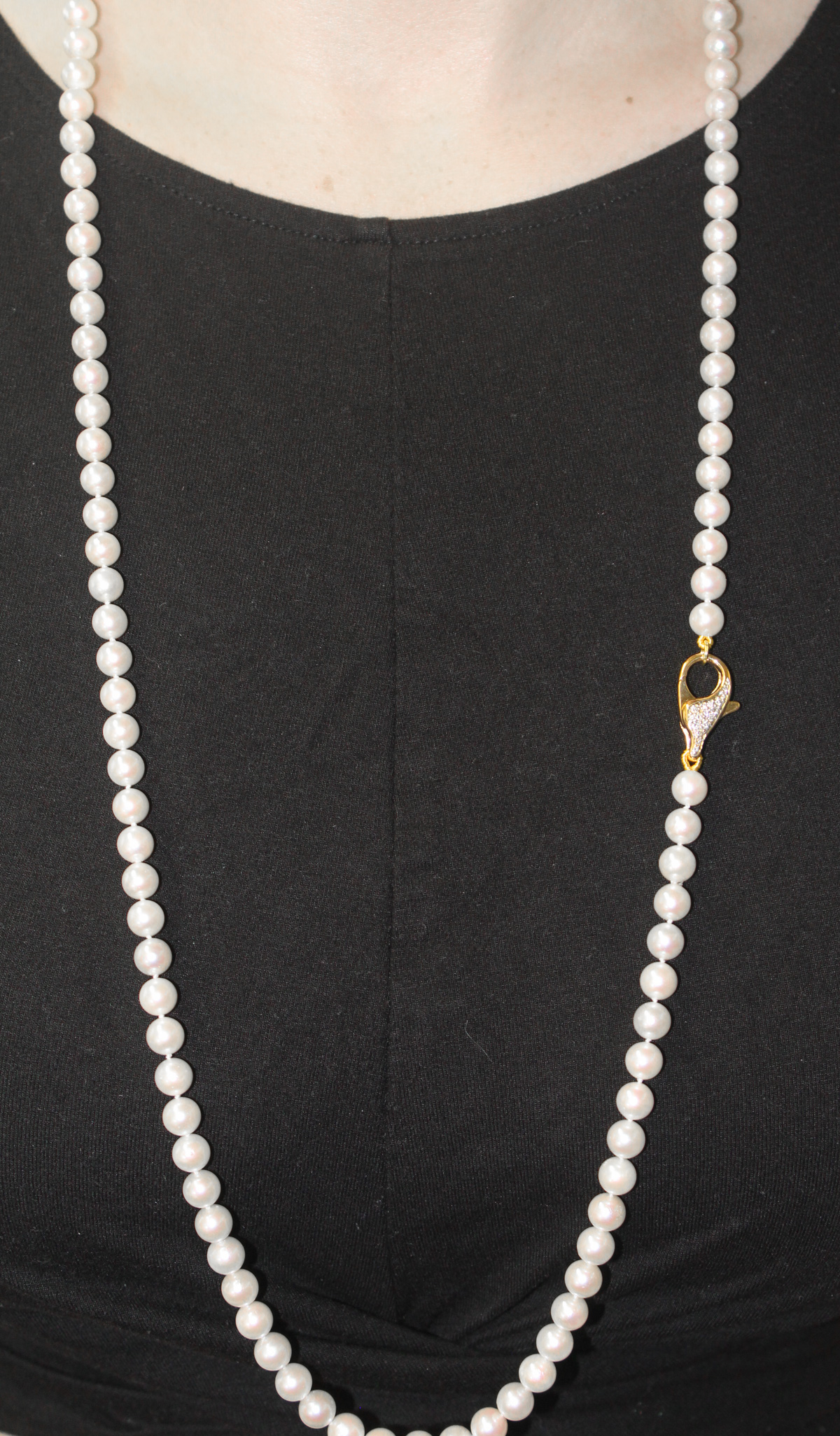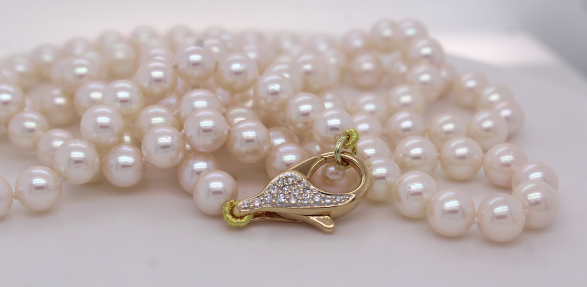 Perlenkette 87cm Gold 585 14K Akoyaperlen Brillanten 0.5ct 87