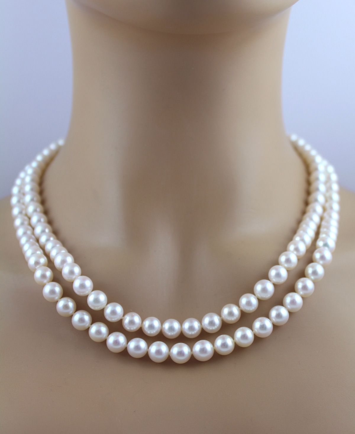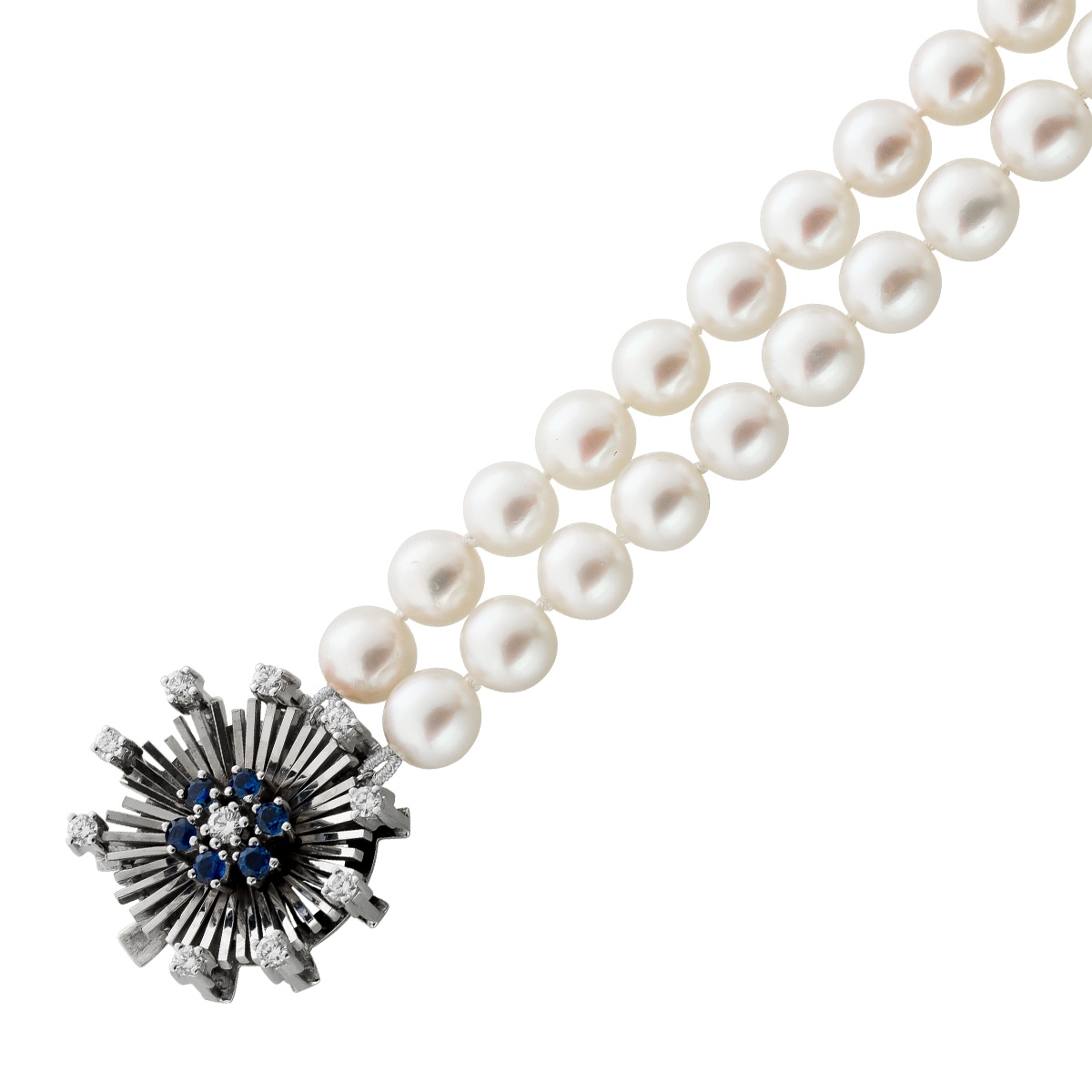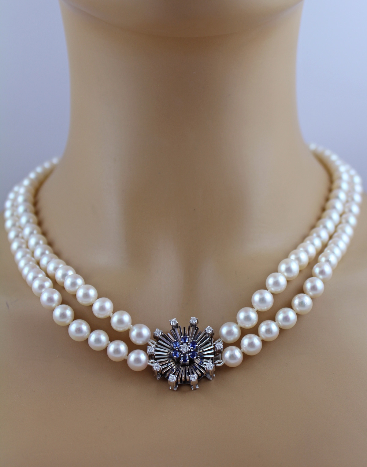 Perlenkette 8mm Weißgold 750 Saphir Diamanten 2 reihig Akoyaperlen 55