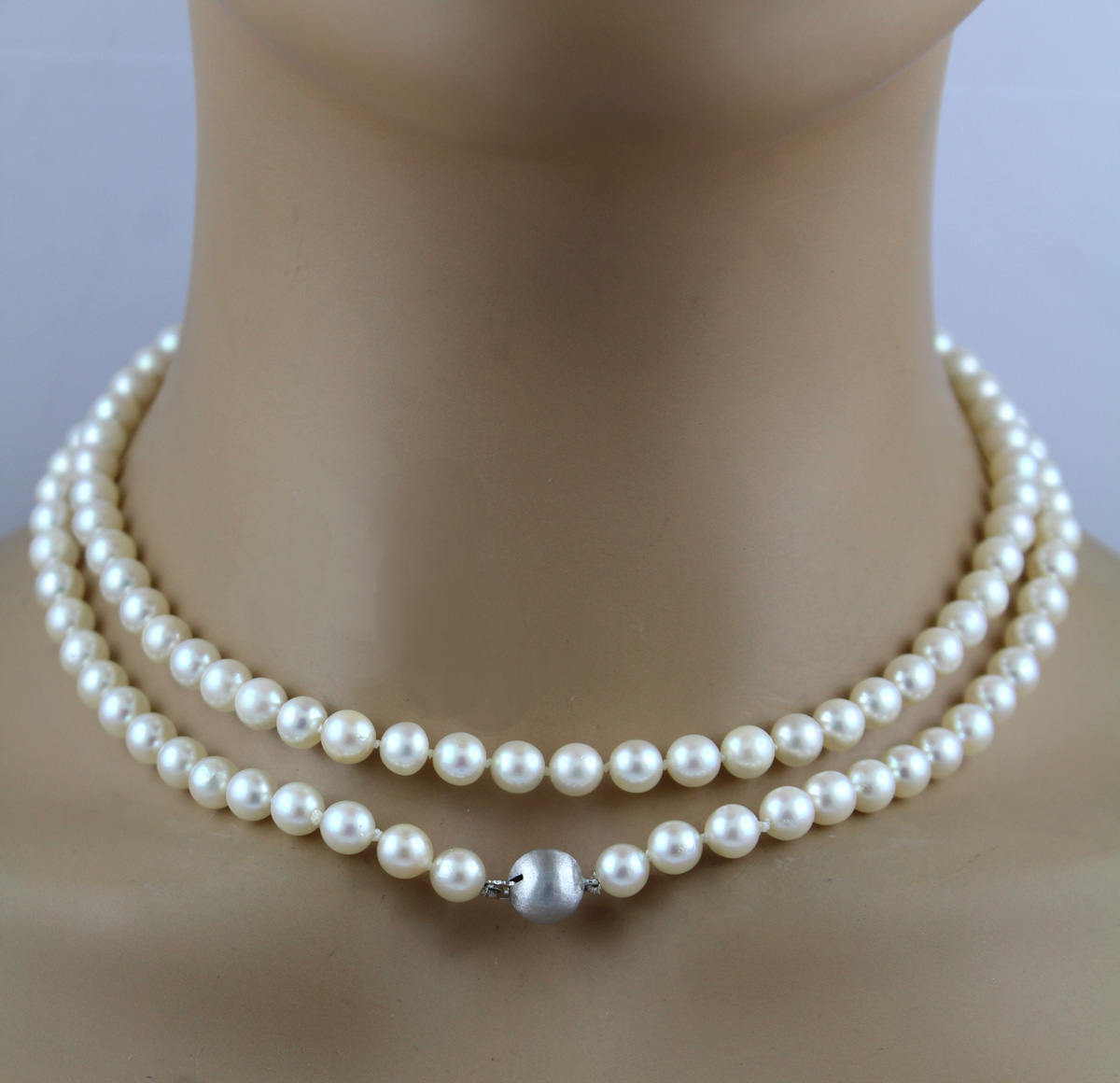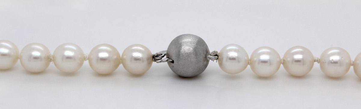 Perlenkette 90cm Weißgold 585 14 Karat japanische Akoyaperlen 6.5mm 90