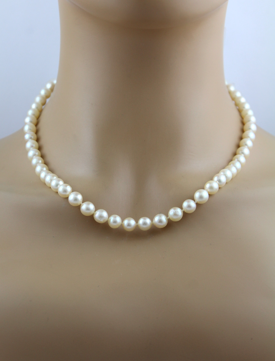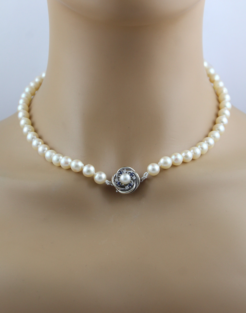 Perlenkette Akoya Perlen Saphire Diamanten Weissgold 585 14K 47
