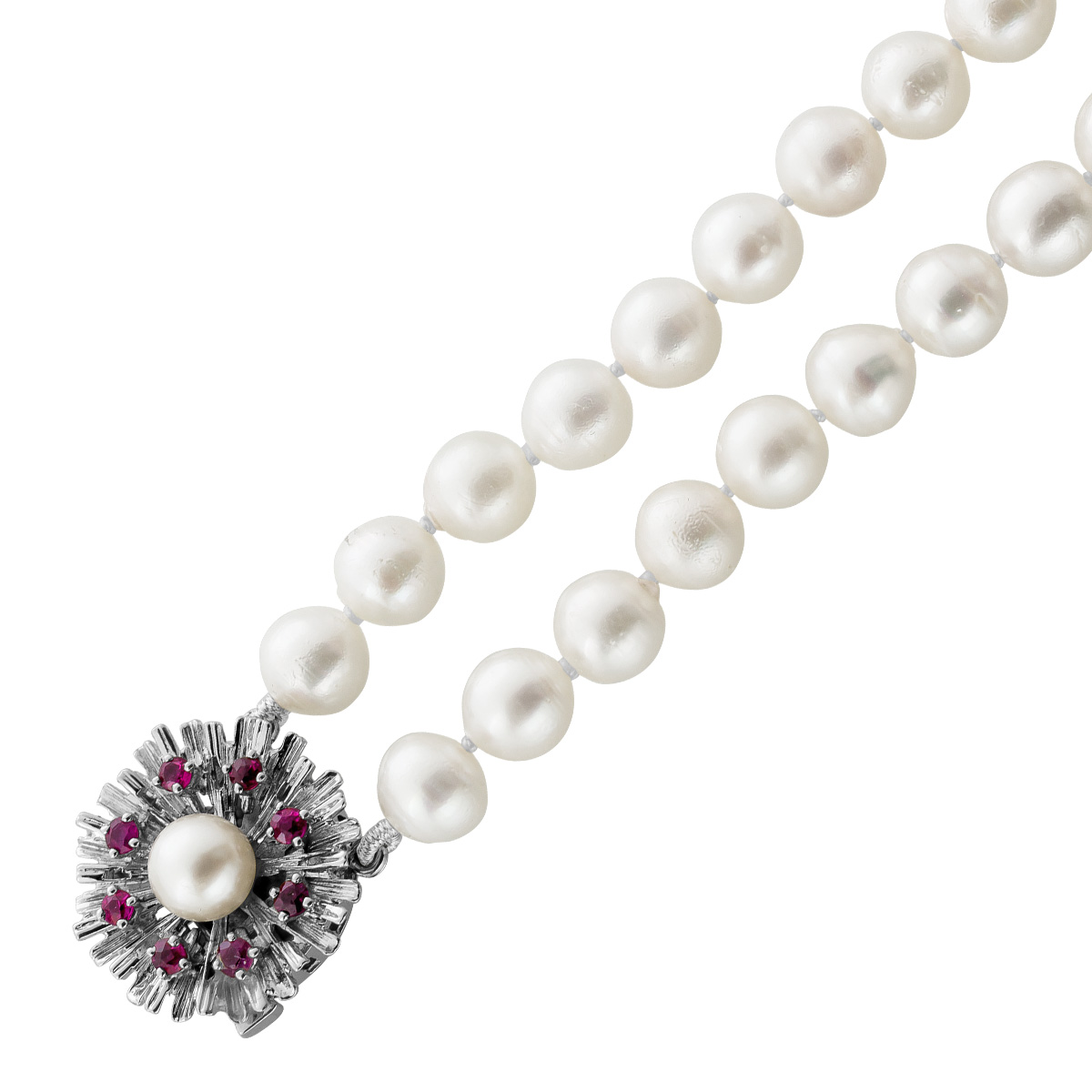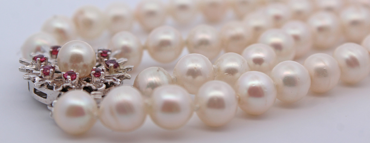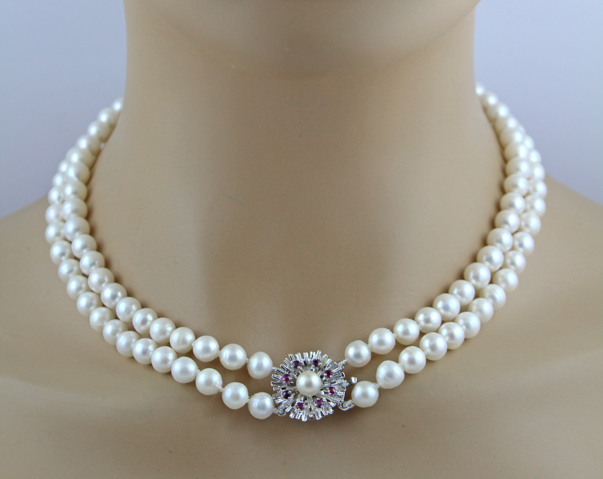 Perlenkette Akoyaperlen rote Rubine 0.80ct Weißgold 585 14K. Die Schließe wurde zusätzlich mit einem Sicherrungsstift ausgestattet. Schließe: LxBxH 19,2x19,6x9mm, Perlen 7,6-7mm, 44 und 47cm, 65,07 Gramm. Damenkette Perlenkette Perlenschmuck Edelsteinkette. Tauchen Sie ein in die Welt der meisterhafter Goldschmiedekunst