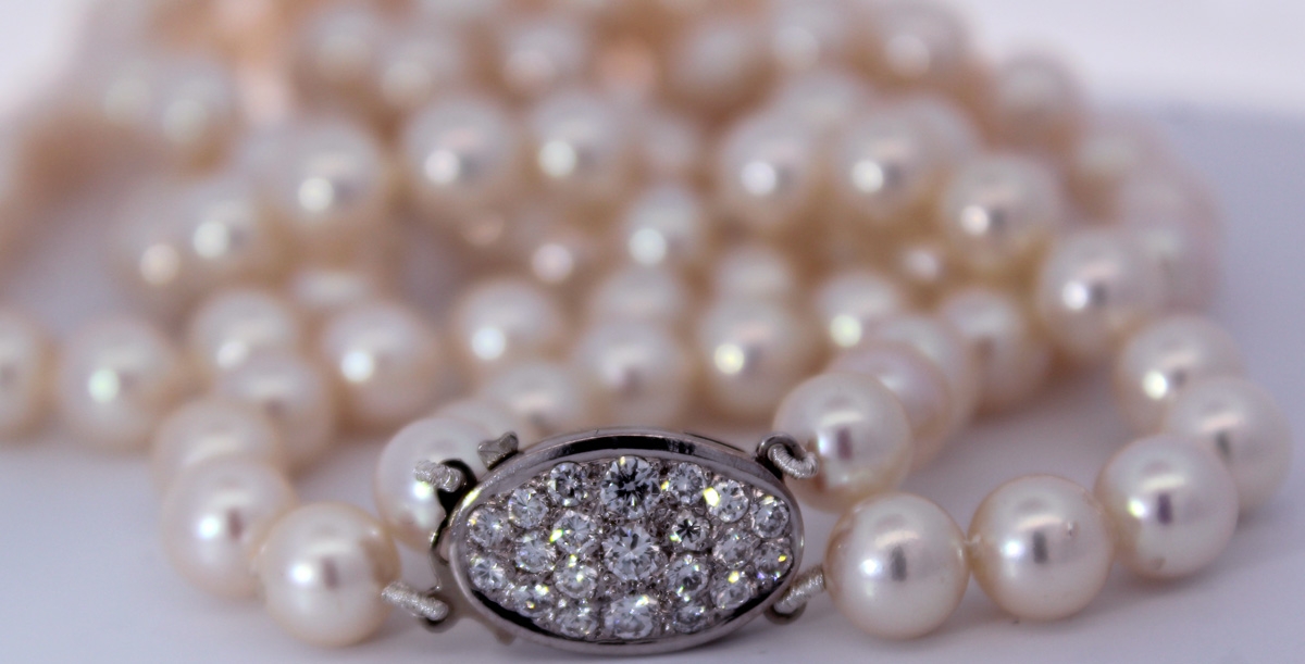 Perlenkette Akoyaperlen Weißgold 590 Brillanten 1ct Lupenrein 44