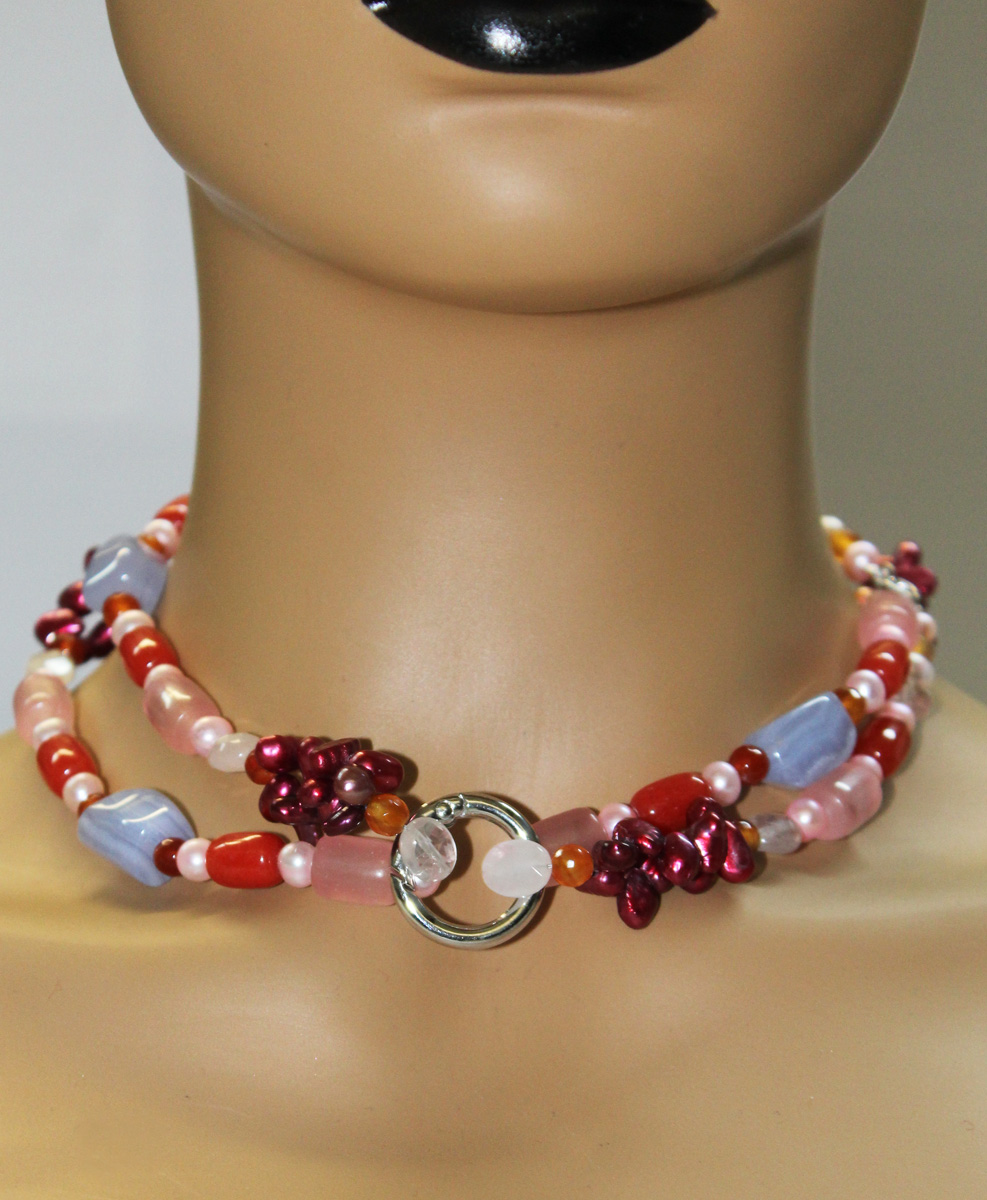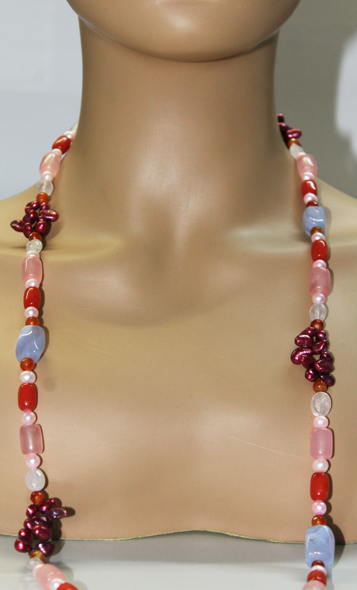 Perlenkette Chalzedon Rosenquarz Achat Bergkristall Natur Edelsteine. Achat wird oft als Stein der Erdung und Stabilität angesehen. Gewicht 104,35 Gramm. Damenschmuck Edelsteinschmuck Damenkette Perlenkette. Geschenkidee zeitloser Klassiker