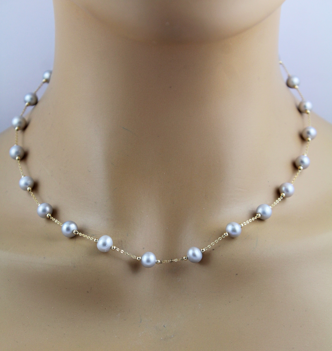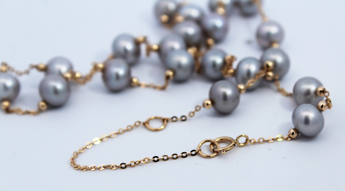 Perlenkette Gold 585 14K graue Süßwasserzuchtperlen 6-6.5mm 45