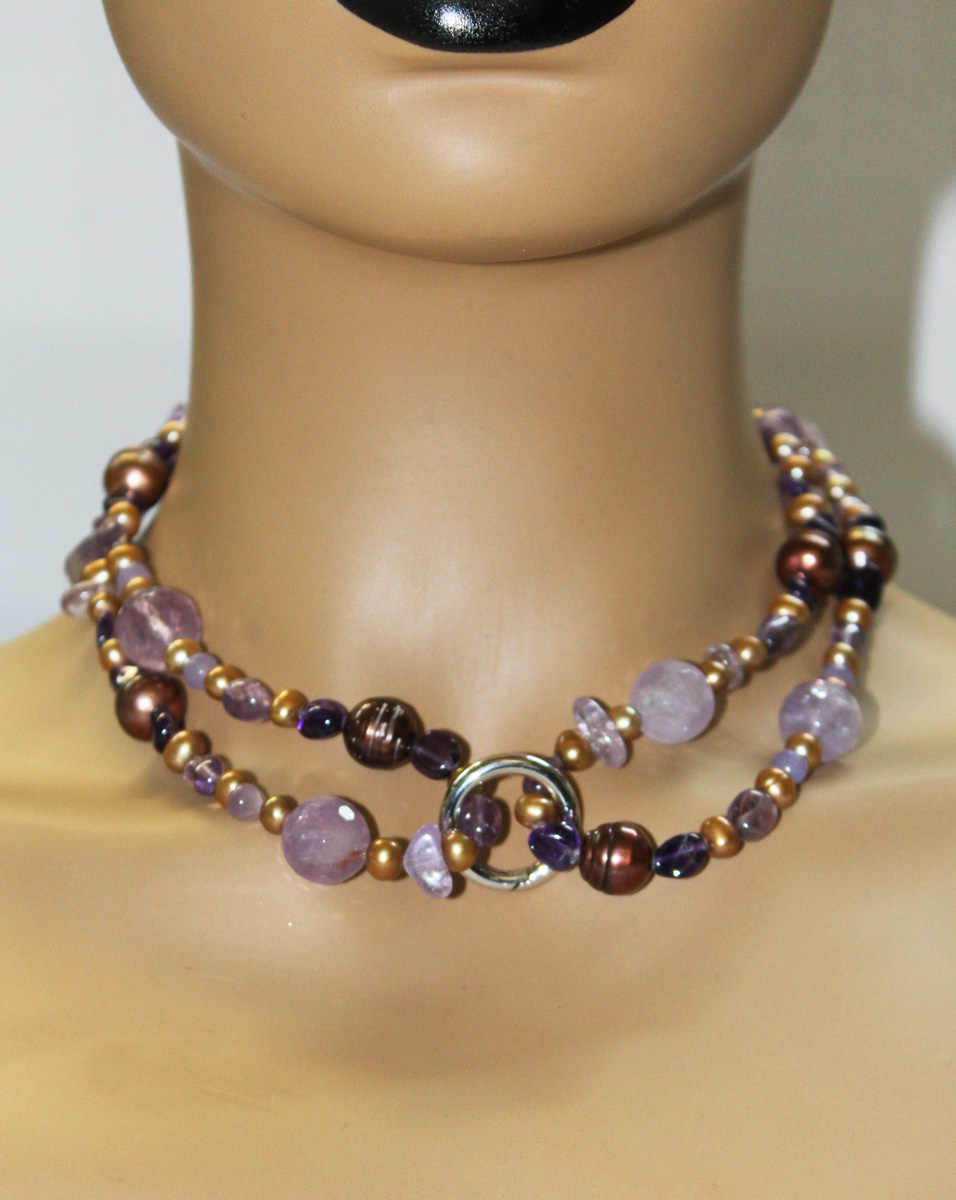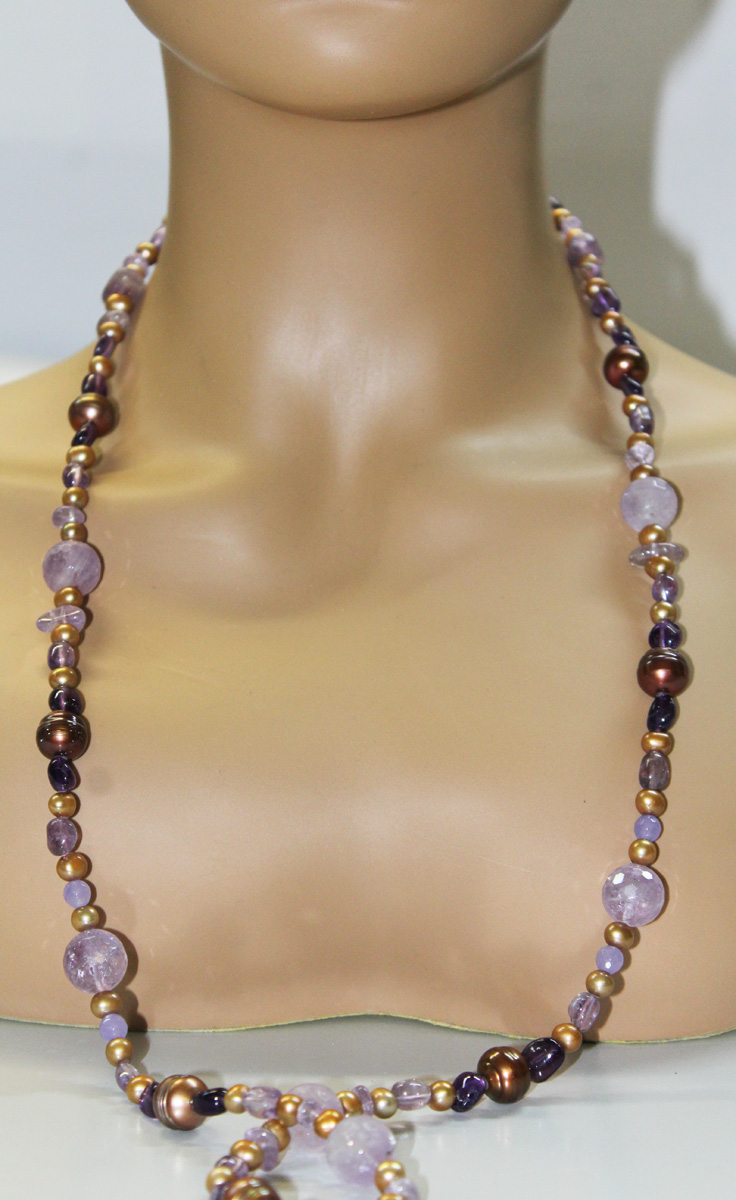 Perlenkette Natur Amethyst Edelsteine Süßwasserperlen 90