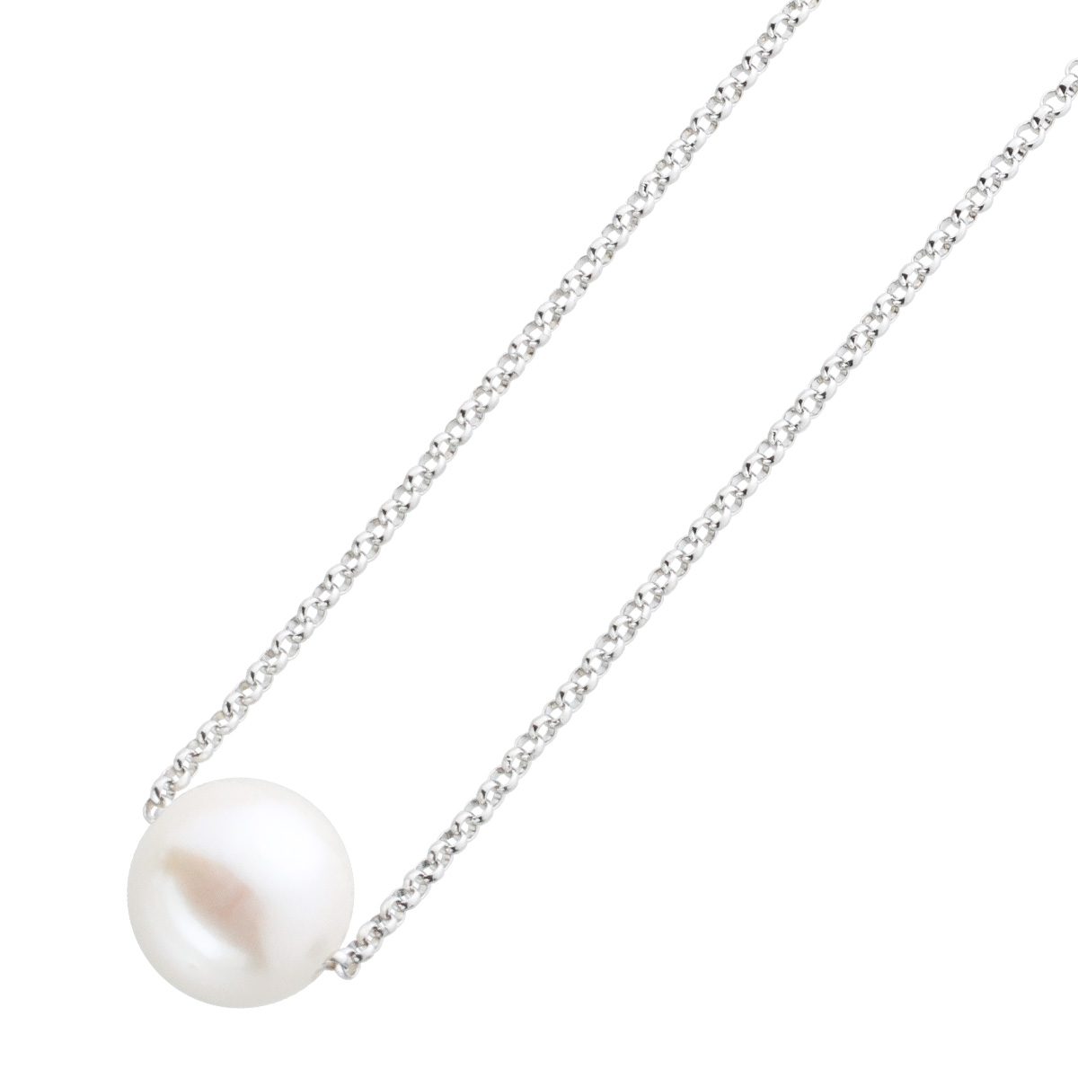 Erbskette Silber 925 weiße Süsswasserzuchtperle 10,6mm. Klassische Kette mit einer schimmernden Süßwasserzuchtperle. Länge 42cm+5cm, Gewicht 3,7 Gramm, Perlendurchmesser 10,6mm. Damenkette Damenschmuck. Feinster und zugleich romantischer Stil für jede Frau