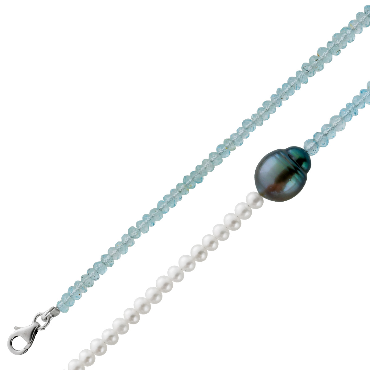 Perlenkette Süßwasser Zuchtperlen Tahiti Perle Natur Blautopas 42