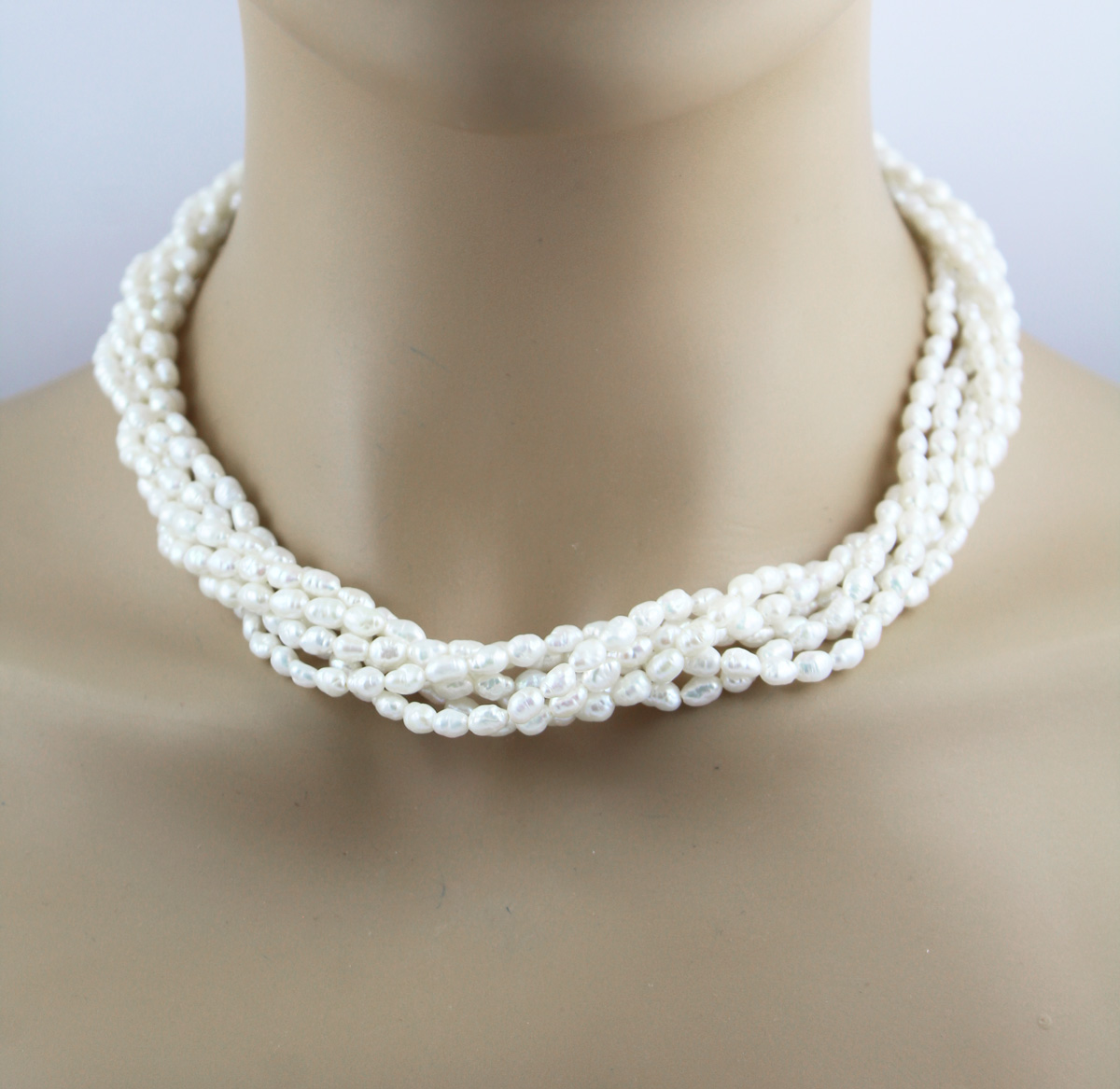 Perlenkette Süßwasserperlen 4.5mm Gold 750 18K. Diese luxeriöse 6-reihige Perlenkette ist ein wahres Kunstwerk, das die Vielfalt und Schönheit natürlicher Süßwasserperlen mit edler Goldverarbeitung kombiniert. 47cm, 76,4 Gramm. Damenkette Perlenkette Perlenschmuck