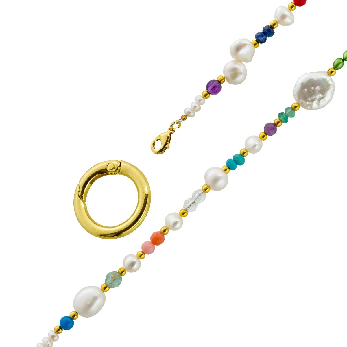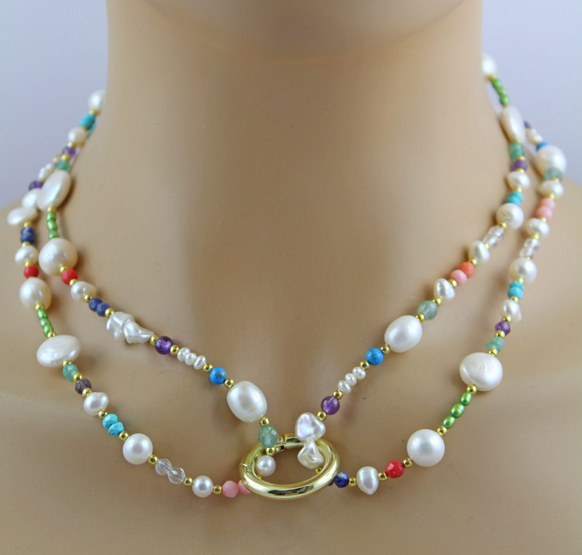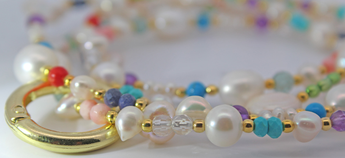 Perlenkette Süßwasserperlen Amethyste Türkise Fluorit Carneol Bergkristall 90