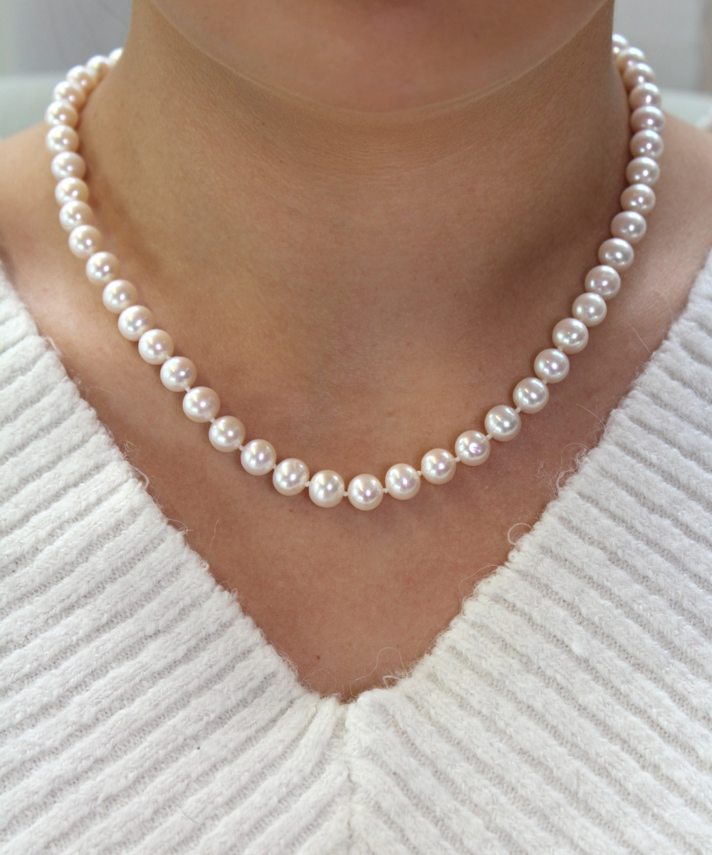 Perlenkette weiss 8mm 42cm-47cm Top Lustre Süsswasser 42