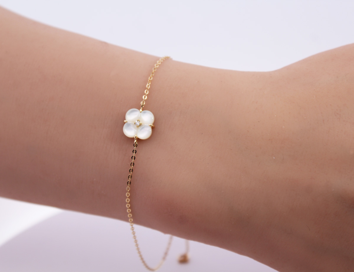Perlmutt Armband Kleeblatt Gelbgold 585 14K Brillant 0.015ct 18