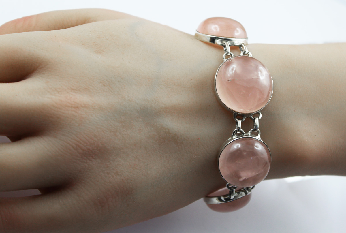 Rosenquarz Armband Silber 925 5 pastell rosa Rosenquarz Edelsteine 142ct. Das Armband ist sehr beweglich und schmiegt sich wunderbar dem Handgelenk an. Breite 22,3mm, Höhe 10,1mm, 18+2cm, 37,86 Gramm. Damenarmband Damenschmuck Rosenquarz Schmuck. Eine exquisite Ergänzung für Ihre Schmucksammlung