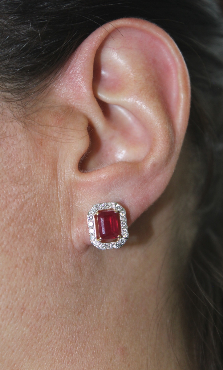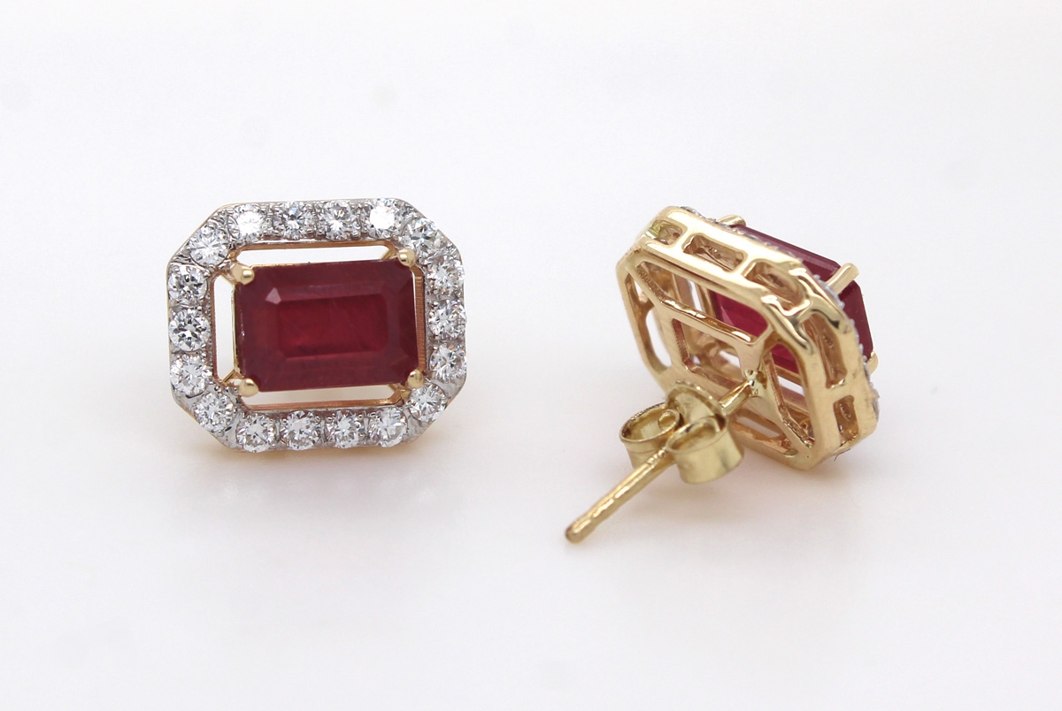 Rubin Ohrstecker Gold 585 14K rote Edelsteine Lab Grown Diamanten 0.65ct. Sanfter und zugleich romantischer Stil für jede Frau. Länge 12,2mm, Breite 10,1mm, Höhe 6,3mm, Total 3,58 Gramm. Damenohrringe Damenschmuck Diamantohrringe Labor Diamanten. Ein imposanter und zeitloser Klassiker, welcher jedes Frauenherz höher schlagen lässt