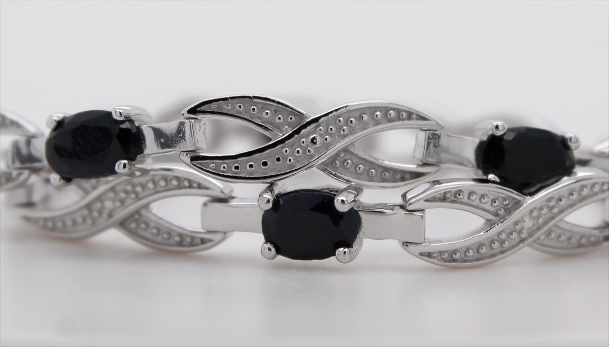 Saphir Armband Infinity Silber 925 nachtblaue Edelsteine 18