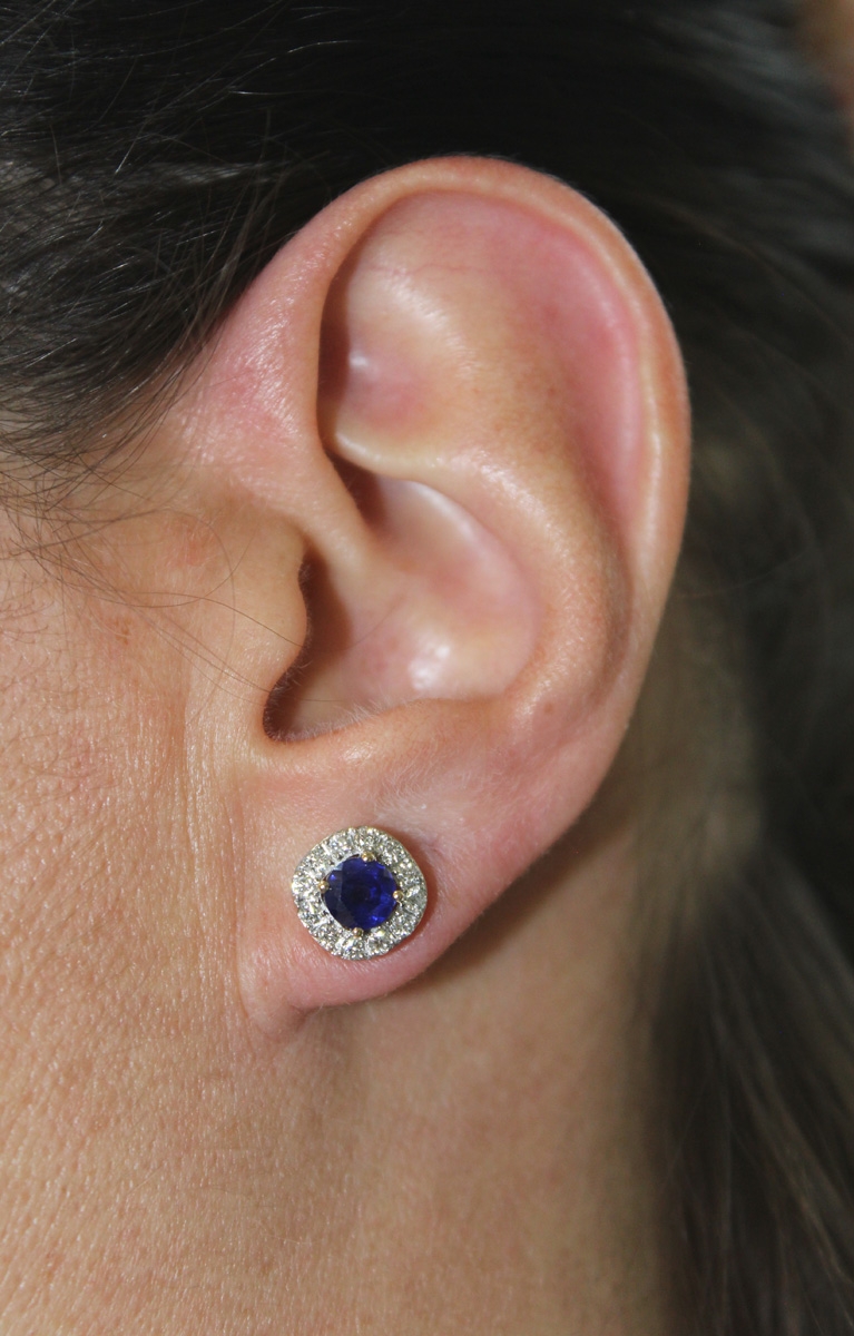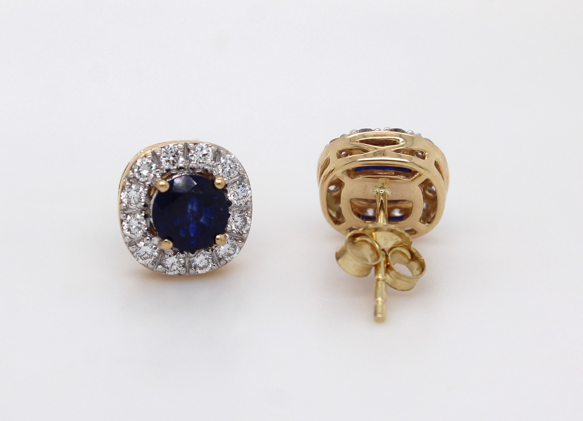 Saphir Ohrstecker Gold 585 14K blaue Edelsteine Lab Grown Diamanten. Klassische Ohrringe zu jedem Anlass passend. Durchmesser 9mm, Breite 5mm, Total 2,43 Gramm. Damenohrringe Damenschmuck Diamantohrringe Labor Diamanten. Ein imposanter und zeitloser Klassiker, welcher jedes Frauenherz höher schlagen lässt