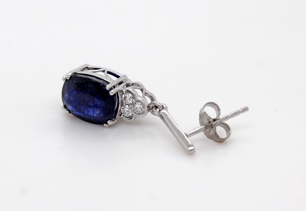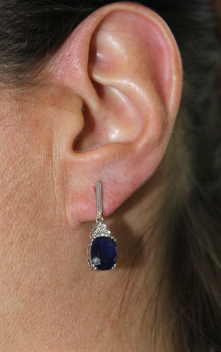 Saphir Ohrstecker Weißgold 585 14K blaue Edelsteine Lab Grown Diamanten. Klassische Ohrringe zu jedem Anlass passend. Länge 24,6mm, Breite 7,1mm, Höhe 6,1mm, Total 3,61 Gramm. Damenohrringe Damenschmuck Diamantohrringe Labor Diamanten. Ein imposanter und zeitloser Klassiker, welcher jedes Frauenherz höher schlagen lässt