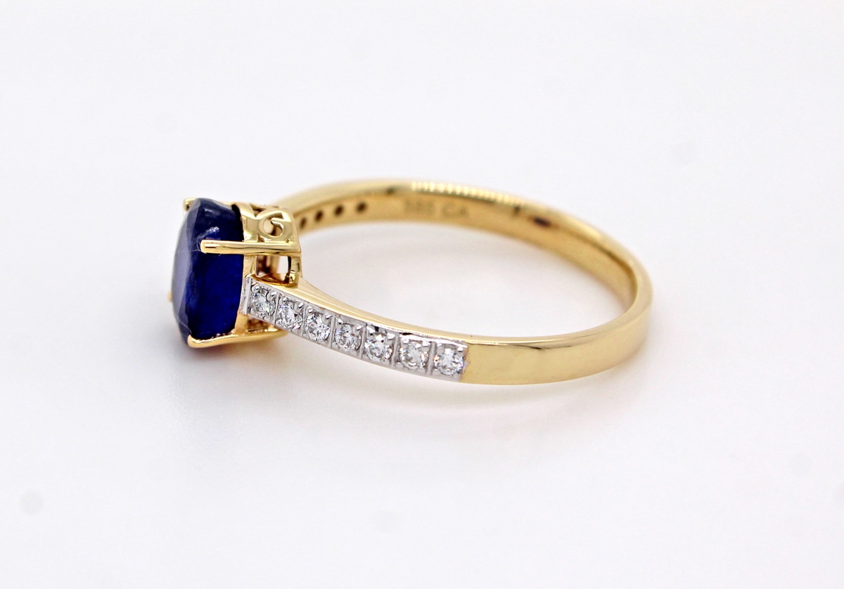 Saphir Ring Gelbgold 585 14K blauer Edelstein Lab Grown Brillanten. Sanfter und zugleich romantischer Stil für jede Frau. Breite 8,2mm, Höhe 6mm, Stärke 1,2mm, ca. 3,01 Gramm, Größen 17-20mm. Damenring Saphir Schmuck Brillantring. Ein imposanter und zeitloser Klassiker, welcher jedes Frauenherz höher schlagen lässt